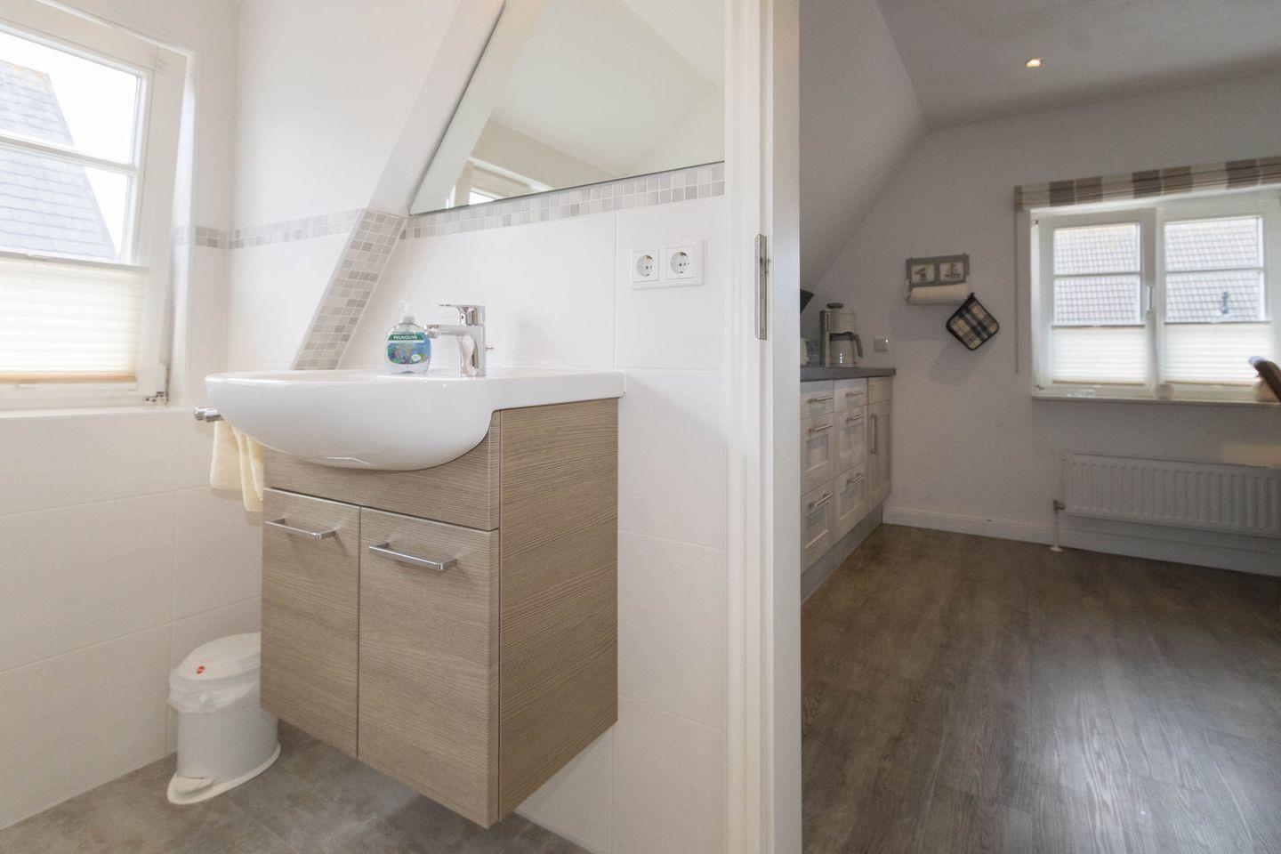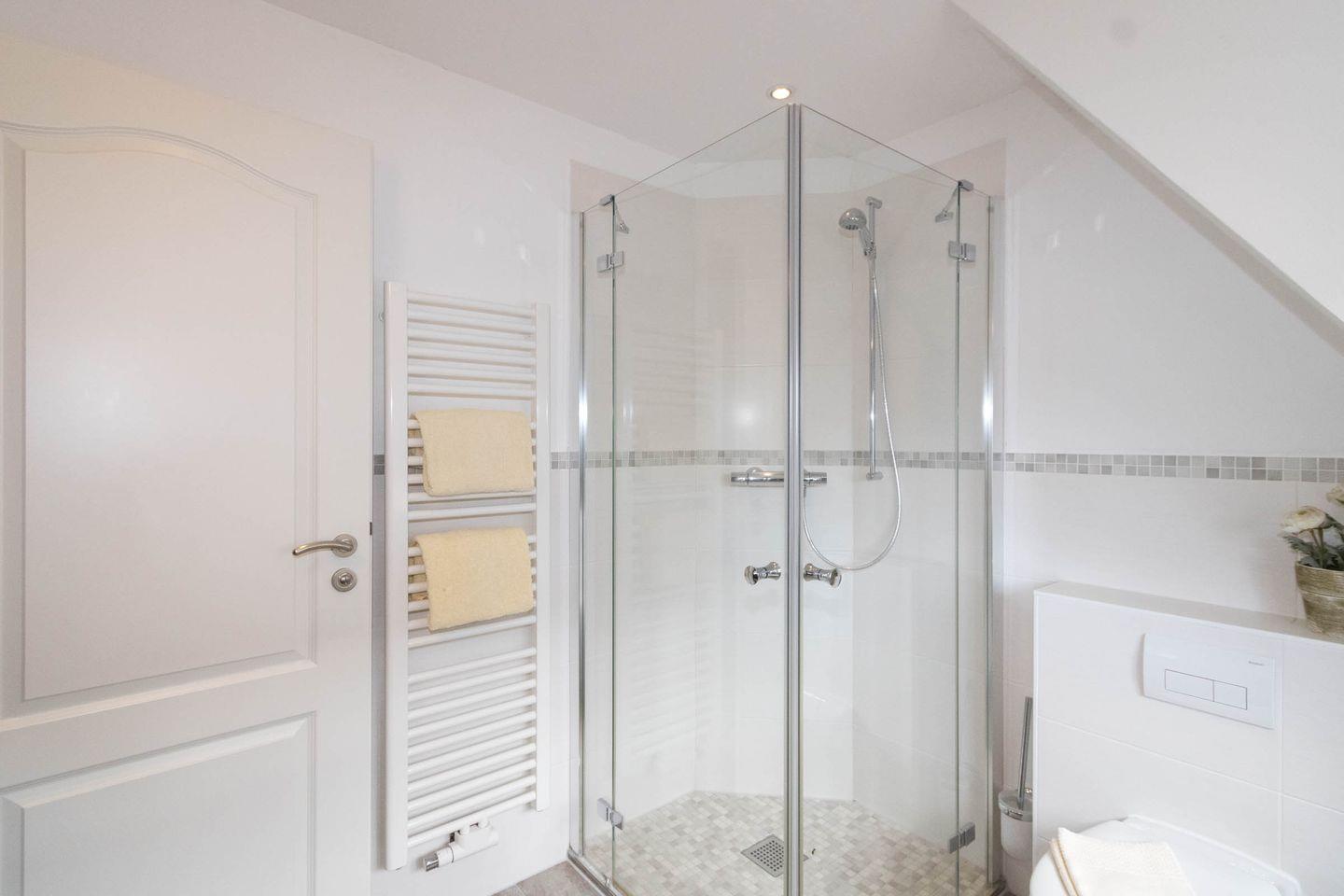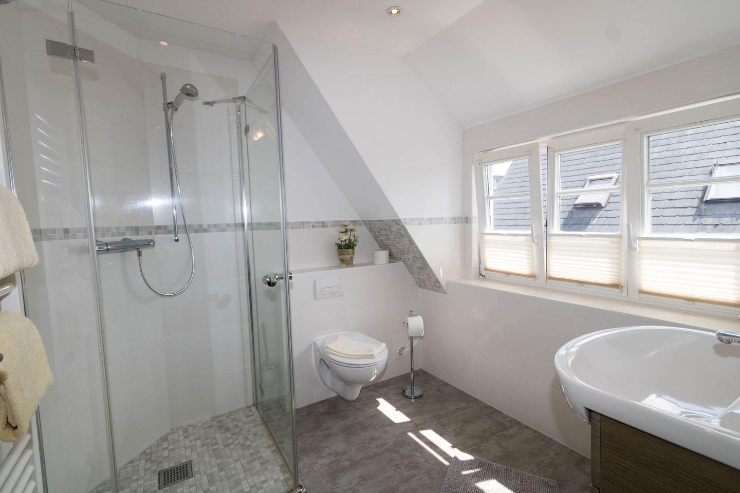 Ein besonderes Highlight ist das geschmackvolle Badezimmer mit einer begehbaren, bodengleichen Dusche, die ein modernes Ambiente verspricht. Hier können Sie nach einem erlebnisreichen Tag auf Sylt erfrischende Duschen genießen. Die Wohnung ist allergikergeeignet und bietet liebevoll durchdachte Details, um Ihren Aufenthalt so angenehm wie möglich zu gestalten.