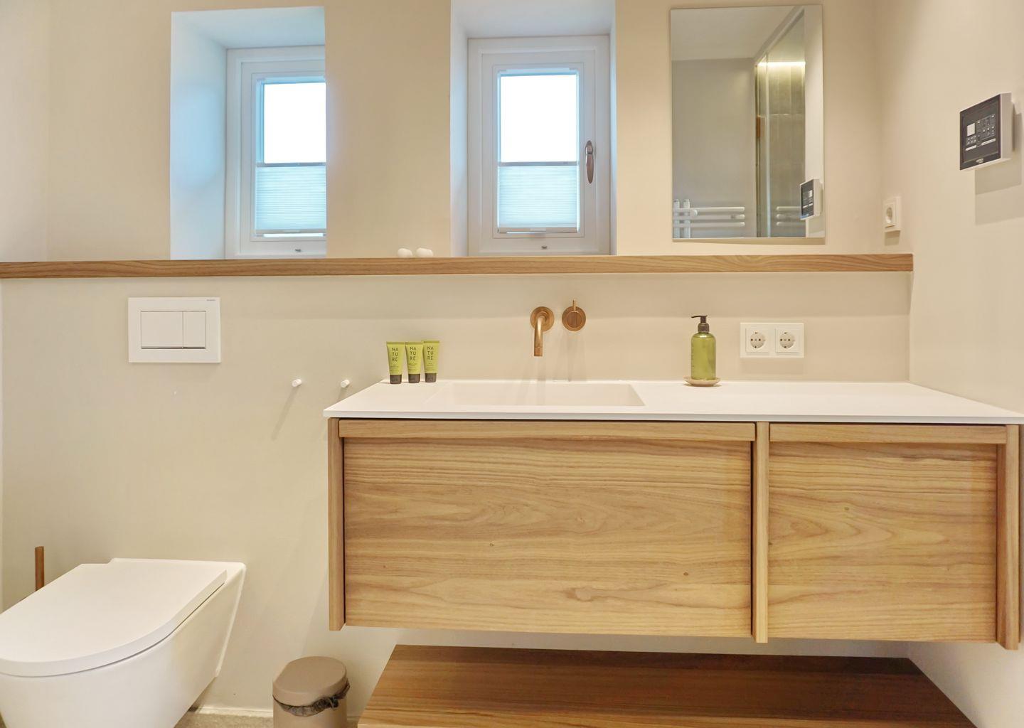 Bad 1: helles, modernes Bad mit WC, Dampfdusche, Einzelwaschtisch