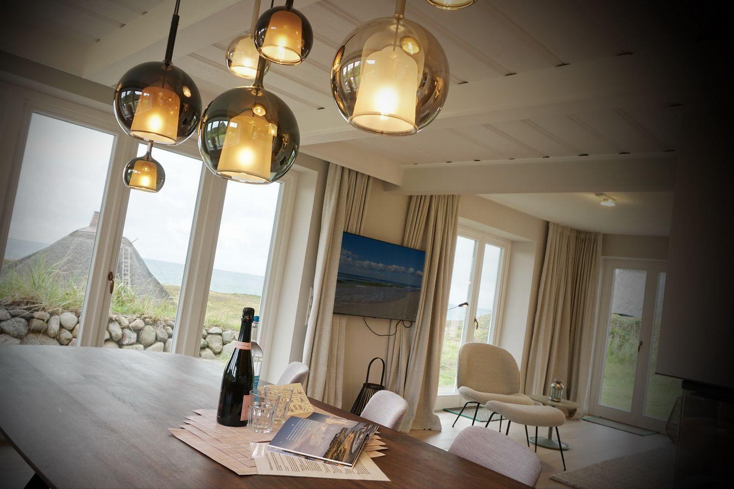 Das hier vorgestellte Einzelhaus hoch über den Dächern von Hörnum, zwischen Heiderosen, dichtem Dünengras und herrlichem Rundum-Panorama ( Sonnenaufgang und Sonnenuntergang) wurde kernsaniert und zu einem sehr charmanten Haus mit freundlichen ausgesuchten Naturmaterialien und Farben sowie mit diversen italienischen, dänischen, französischen und deutschen Designmöbeln, Stoffen, Tapeten und Leuchten [nbsp]ausgestattet