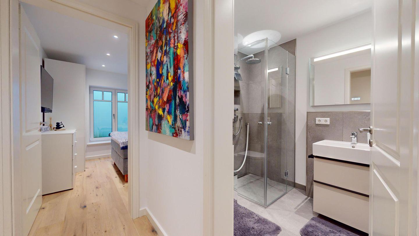 Zwei Schlafzimmer mit Doppelbetten, Badezimmer mit Dusche, Sauna