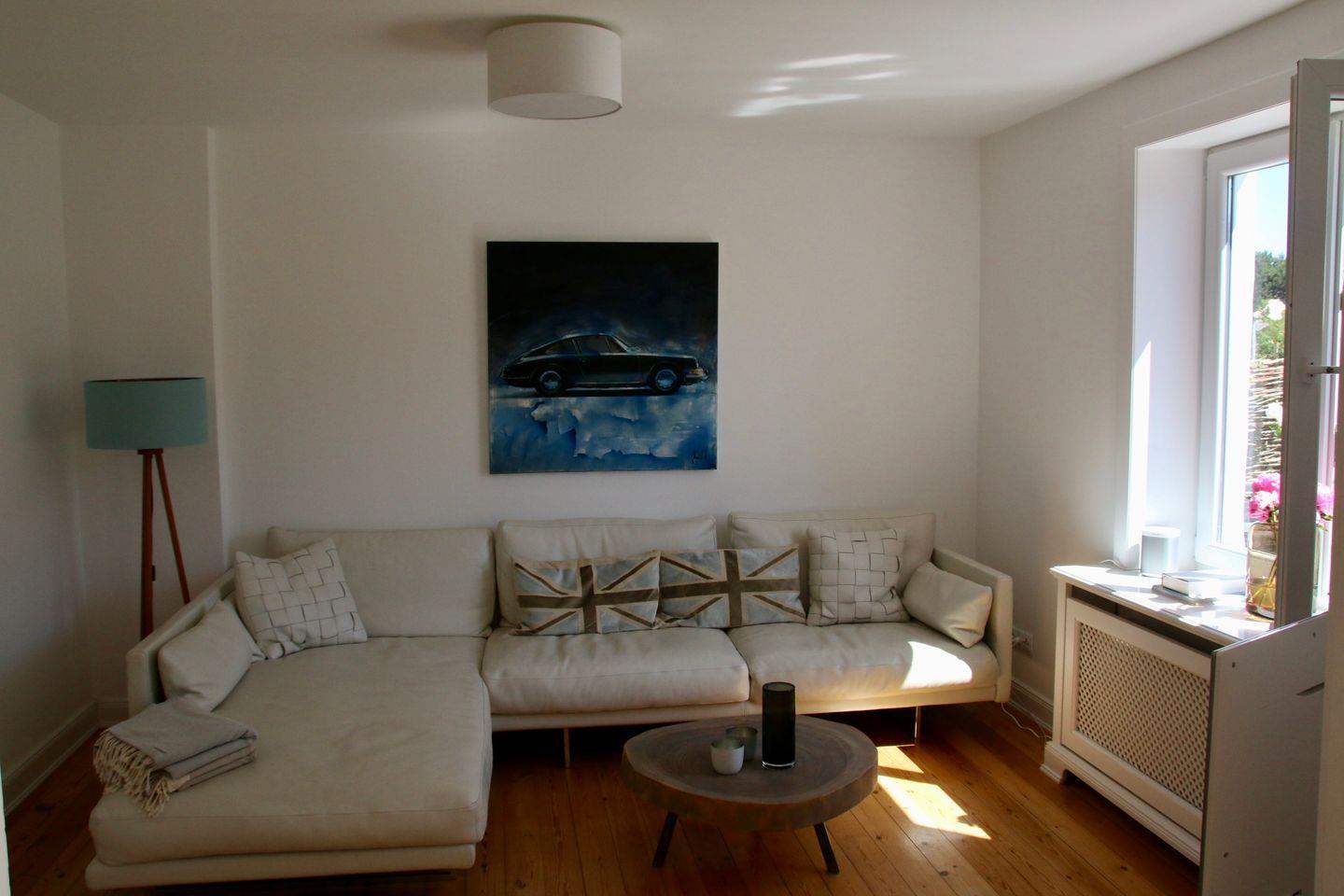 Im Außenbereich lädt ein großer, eingezäunter Garten zum Spielen und Entspannen ein, ideal für Haustiere. Für sportliche Aktivitäten steht eine Tischtennisplatte zur Verfügung, und ein gemütlicher Strandkorb sorgt für entspannte Stunden im Freien. Auf der Terrasse unter dem historischen Leuchtturm befindet sich eine Loungeecke mit großem Designertisch von Garpa und zwei Bänken, die Platz für bis zu 12 Personen bieten.