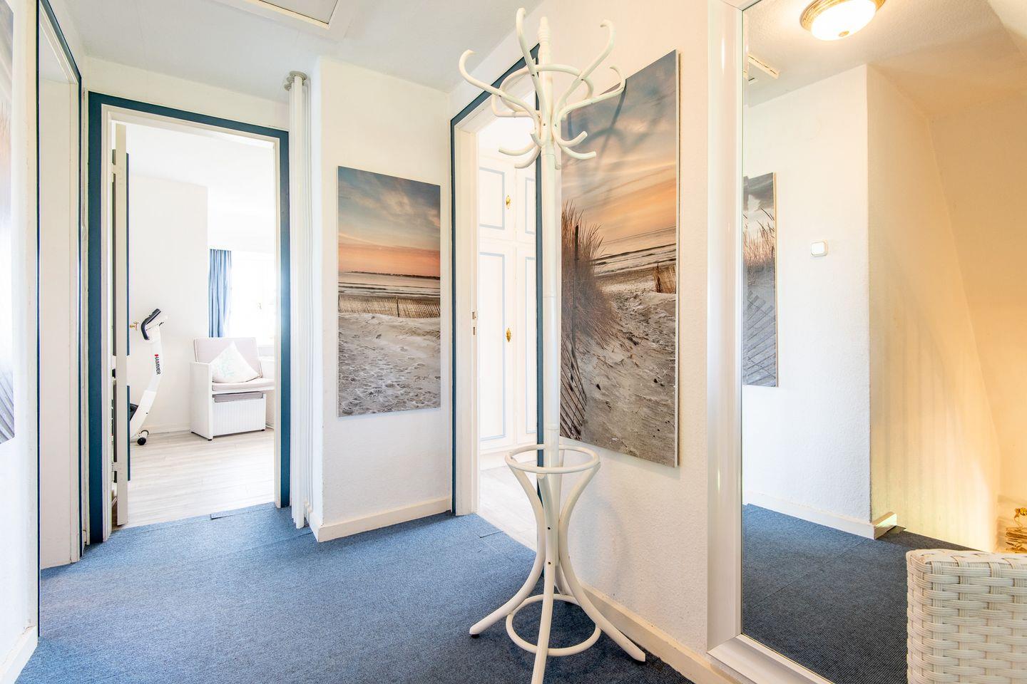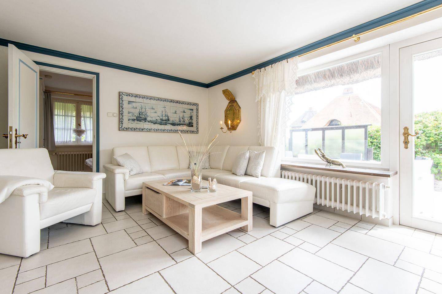 3 Schlafzimmer, 2 Badezimmer mit Dusche und Badewanne, offene Küche zum Wohn-/Essbereich, Wohnzimmer mit Zugang zur geschützten Südterrasse mit Dünenblick und Strandkorb, WLAN (ohne Gewähr) vorhanden, PKW-Stellplatz, Hunde willkommen.