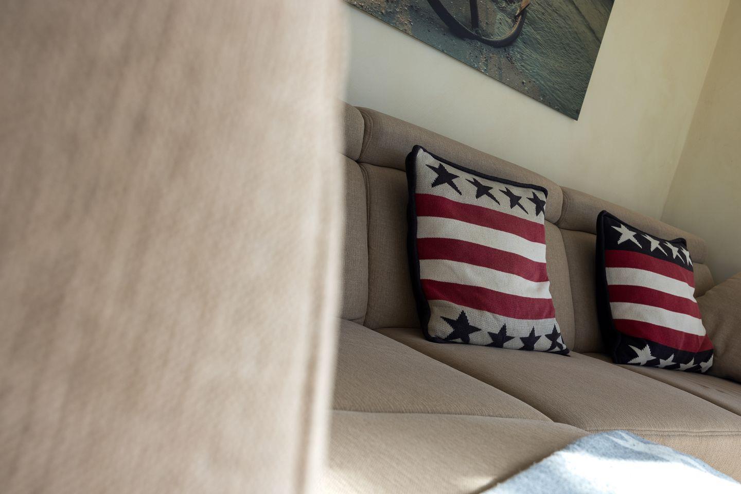 Im Erdgeschoss erwartet Sie ein großes, lichtdurchflutetes Wohnzimmer, das mit zwei zusätzlichen Sesseln zum Verweilen und Entspannen einlädt. Die angrenzende, voll ausgestattete Küche verfügt über einen großzügigen Essbereich für bis zu 6 Personen – ideal für gesellige Abende mit Familie und Freunden. Ein Gäste-WC im Erdgeschoss rundet das Raumangebot ab.