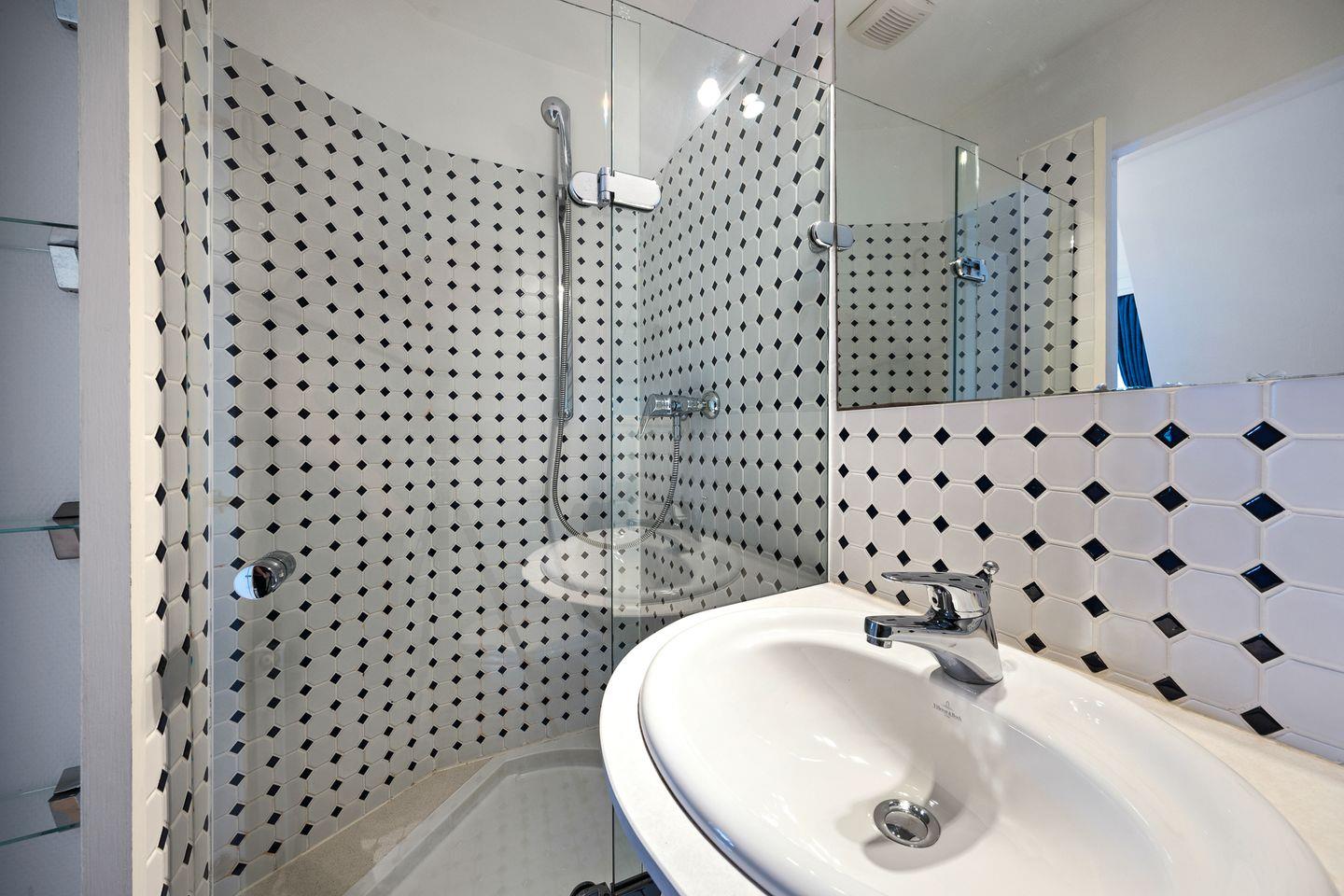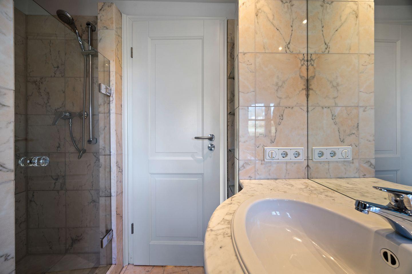 Im Obergeschoss befinden sich das Hauptbadezimmer, das mit einer modernen Dusche und einer Badewanne ausgestattet ist – perfekt für entspannende Stunden. Das Schlafzimmer, nach Westen ausgerichtet, bietet einen fantastischen Meerblick und sorgt für erholsame Nächte. Ein weiteres Schlafzimmer mit eigenem, kleinen En-Suite-Bad, das mit einer Dusche ausgestattet ist, bietet zusätzlich Privatsphäre und Komfort.