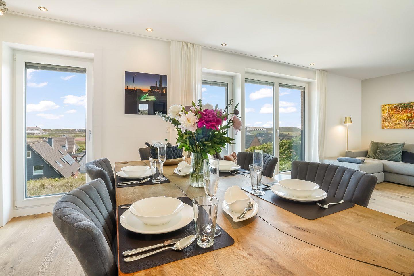 Erleben Sie Sylt von seiner elegantesten Seite: Inmitten der sanften Dünen von Hörnum, nur rund 200 Meter vom Strand entfernt, erwartet Sie ein stilvoll eingerichtetes Ferienapartment, das auf ca. 90?m² Raum für Entspannung und Genuss bietet. Ob zu zweit, mit der Familie oder in Kombination mit dem benachbarten „Kleinen Meerblick“ sogar mit bis zu acht Personen – dieses Refugium ist der perfekte Rückzugsort für alle, die modernen Komfort und die Nähe zur Natur lieben.
