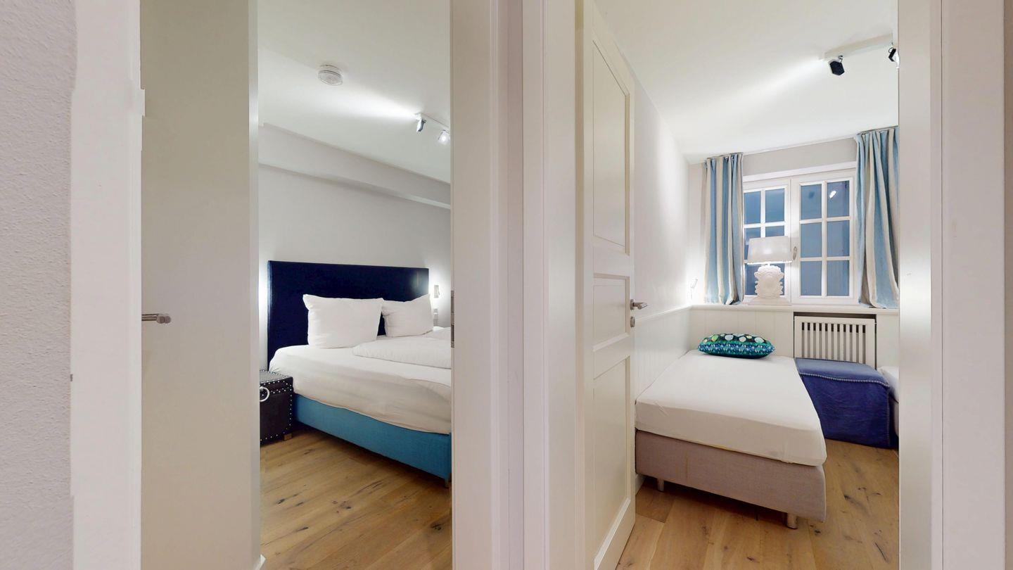 - ein weiteres Zimmer mit zwei Einzelbetten – ideal für Kinder oder mitreisende Freunde