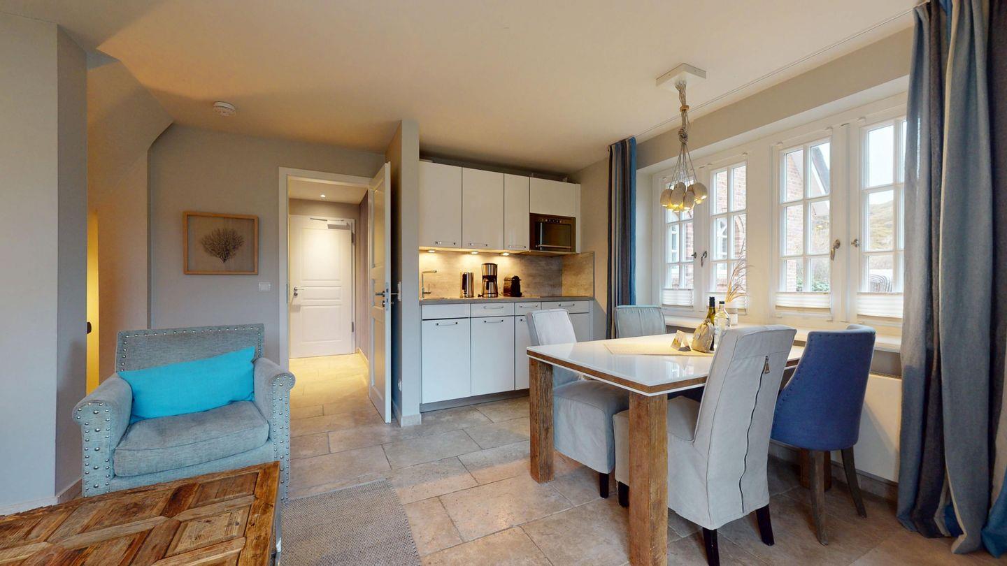 Ob ausgedehnte Spaziergänge entlang der Dünen, entspannte Stunden auf der Terrasse oder gemütliche Abende im Wohnbereich. Dieses Apartment verbindet modernen Wohnkomfort mit nordischem Wohlfühlambiente in perfekter Lage.