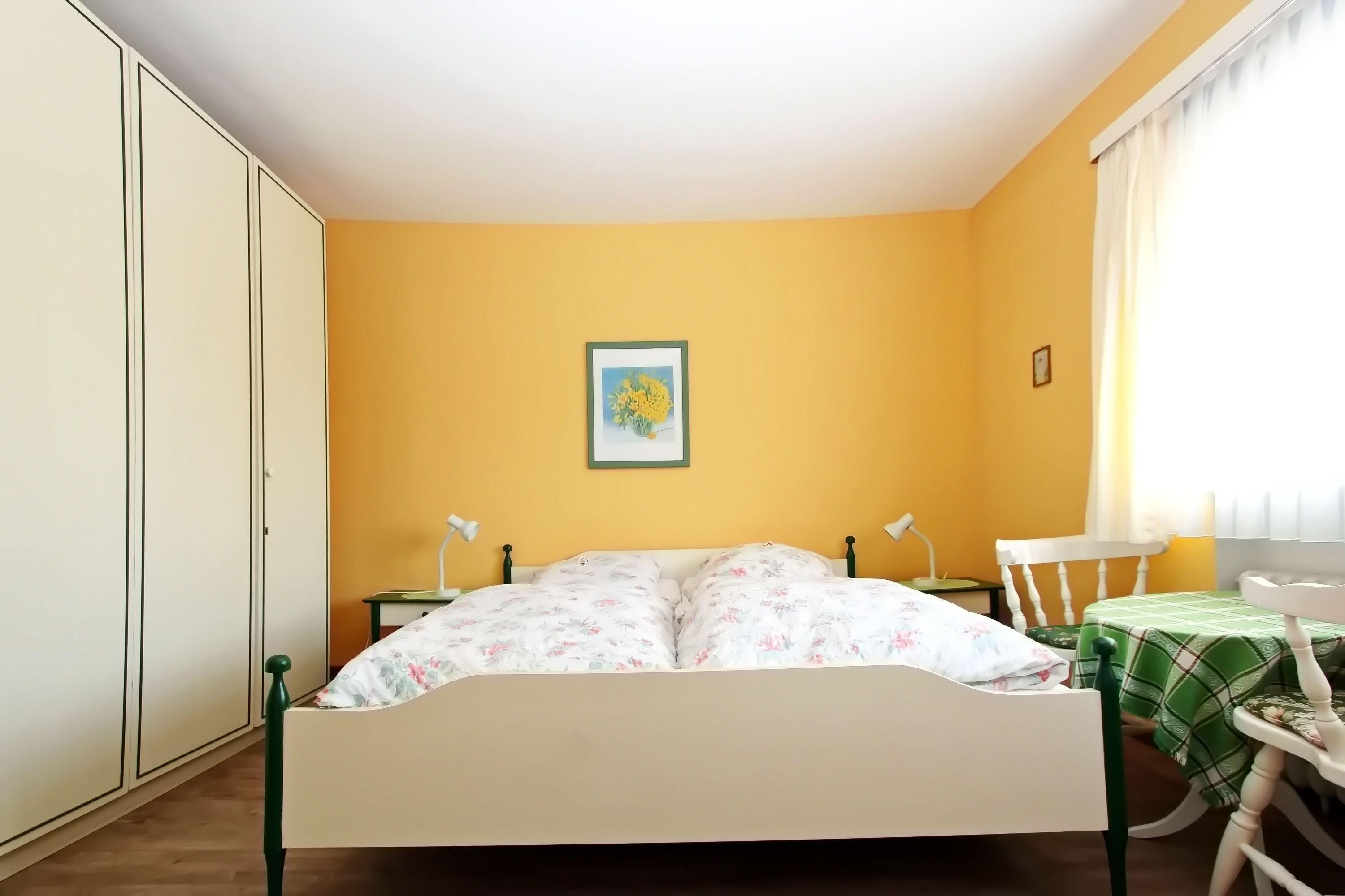Zwei lichtdurchflutete Schlafzimmer: das Erste mit einem Doppelbett, das Zweite mit einem Doppelbett sowie einem Einzelbett. Beide Zimmer bieten durch maß angefertigte Einbauschränke viel