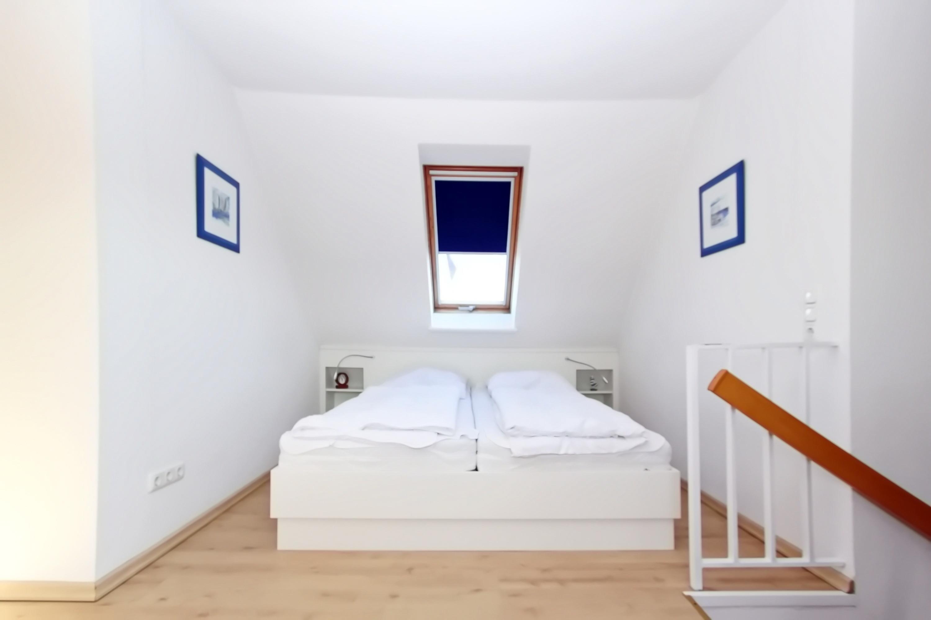 modernes 2 Zimmer Appartement in Hörnum-Nord mit herrlichem Dünenblick für 2 Personen mit ca. 50 m² über OG/DG. Im OG befindet sich ein Wohnraum mit 2-Sitzer Couch, 2 Ranntansessel, Glastisch, Zugang zum Südbalkon mit herrlichem Dünenblick, Essplatz für 4 Personen, Sat-TV, offene Einbauküche mit Ceranherd, Backofen, Geschirrspüler, Kühlschrank und Mikrowelle; Duschbad/WC; Flur mit Garderobe; über eine Holztreppe geht es ins offene DG, dort ist ein Doppelbett (2 einzelne Matratzen), Nachttische sowie ein Einbauschrank der ausreichend Schrankfläche bietet.