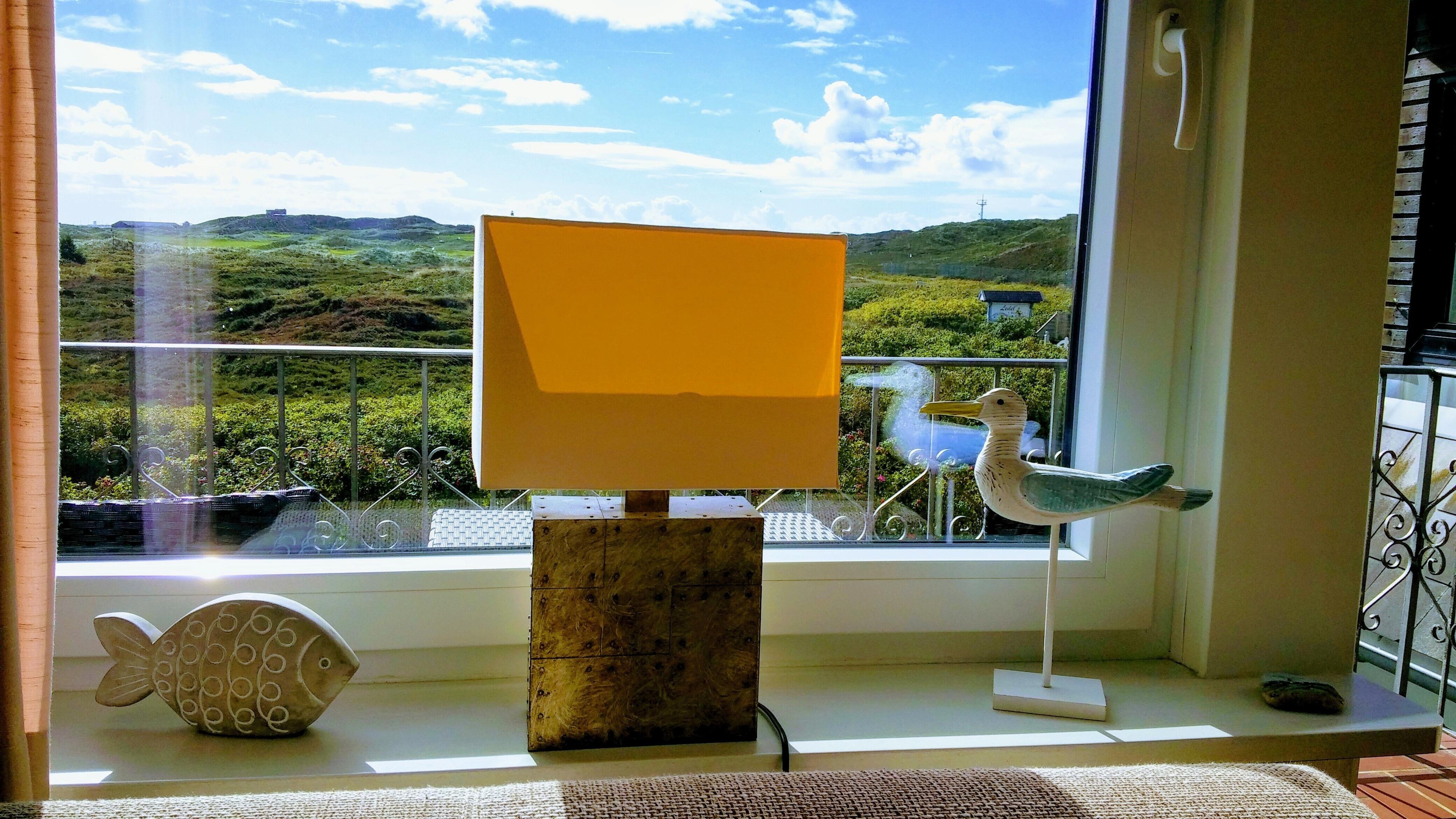 modernes 2 Zimmer Appartement mit ca. 48 m² über OG/DG in Hörnum-Nord; Im OG befindet sich ein Wohnraum mit einem Ecksofa, Tisch, Internet-Radio incl. CD-Funktion, Smart-TV, Glas-Esstisch mit 4 Stühlen im skandinavischen Design, Sideboard mit Mikrowelle, einer Nespresso-Kapselmaschine und Senseo Kaffeepadmaschine, Zugang zum Südbalkon mit Balkonmöbel von dem aus Sie einen fantastischen Blick Richtung Golfplatz und Leuchtturm haben. Separate Küche mit 2 Plattenherd, Kühlschrank sowie einen Eierkocher. Duschbad/WC mit Schminkspiegel. Flur mit Garderobe über den eine Wendeltreppe ins DG führt. Dort befindet sich ein Schlafraum mit Doppelbett (zwei einzelne Matratzen), Nachttisch, Sideboard mit kleinem TV und ein Kleiderschrank. Kostenloser Internetzugang via WLAN.
