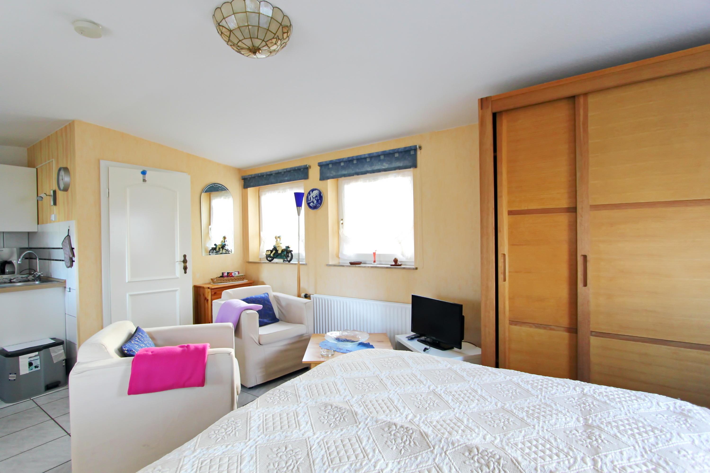 Helles, freundliches Appartement für max. 2 Personen. Bestehend aus einem kombinierten Wohn-/Schlafraum mit integrierter Pantryküche,