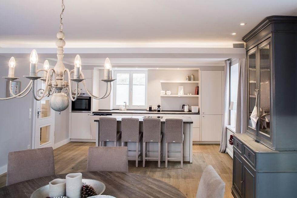 Nicht zu groß für zwei. Aber auch nicht zu klein für sechs. Im StrönHüs ist alles genau so, wie man es sich vorstellt. Sehr geschmackvoll und aufeinander abgestimmt eingerichtet. Und der Blick nach draußen weit und frei. Mit Terrasse für eigene Frühstücke. Mit schönem Saunahaus im weitläufigen Garten für lange Winterabende oder auch nur mal zwischendurch. Mit einer offenen sowie perfekten Küche auch mit eigenen Sitzgelegenheiten. Mit einer gemütlichen Piratenkoje und wohligen Schlafzimmern im Obergeschoss - wo der Blick, ebenso wie aus dem Badezimmer - direkt auf das Meer geht. Und Unterhaltungsmedien mittels modernster Bose-Technik vom Feinsten. Ein dreiseitig offener und sowohl vom Esstisch wie auch gemütlichen Sofas im Wohnbereich einsehbarer Kamin macht das Wohnambiente perfekt.