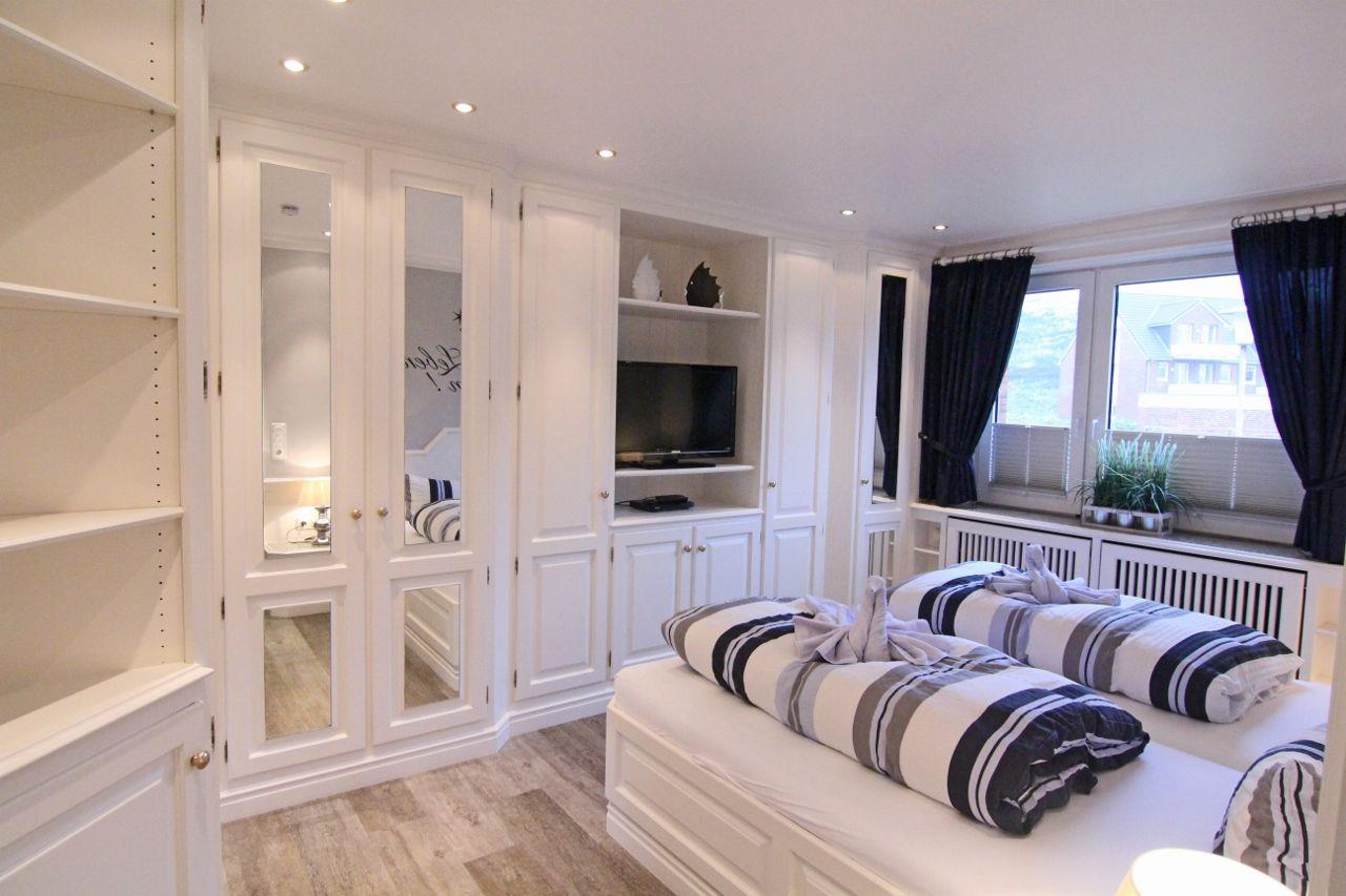Weiße Möbel, davon einige Einbauten in wertiger Tischlerarbeit maßgeschneidert, und meerwasserblaue Akzente, helles Parkett, ein edles Bad und die für Urlaubsverhältnisse geradezu üppig angelegte und ausgestattete Küche machen aus „Käpt’n Hörnchen“ einen liebenswerten Sonderfall, der sich garantiert rasch eine feste Fangmeinde erobern wird (oder es längst getan hat).