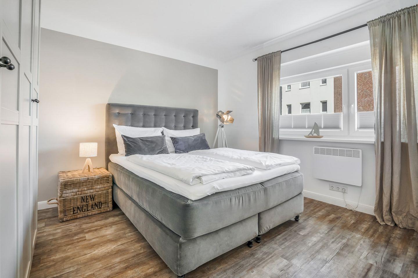 Schlafzimmer sind jeweils mit einem hochwertigen Boxspringbett ausgestattet und