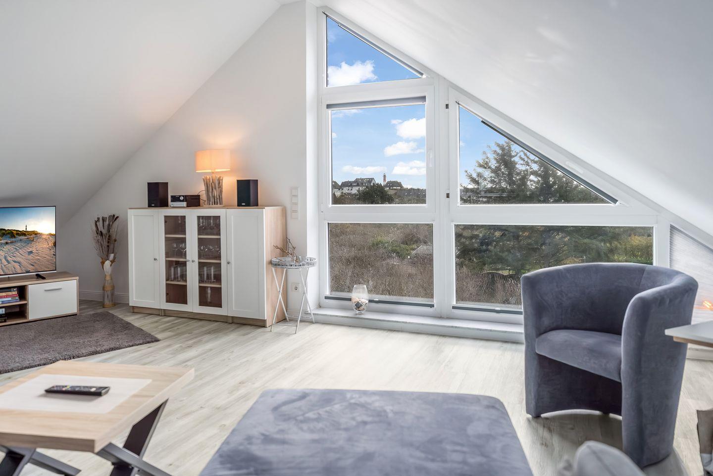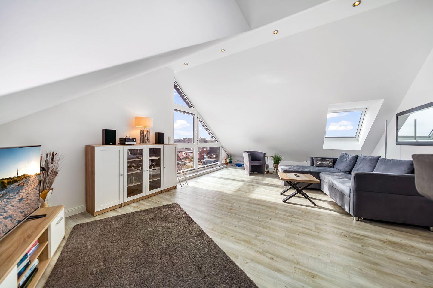 Moderne Dachgeschosswohnung mit Panoramafenster in ruhiger, strandnaher Lage von Hörnum.