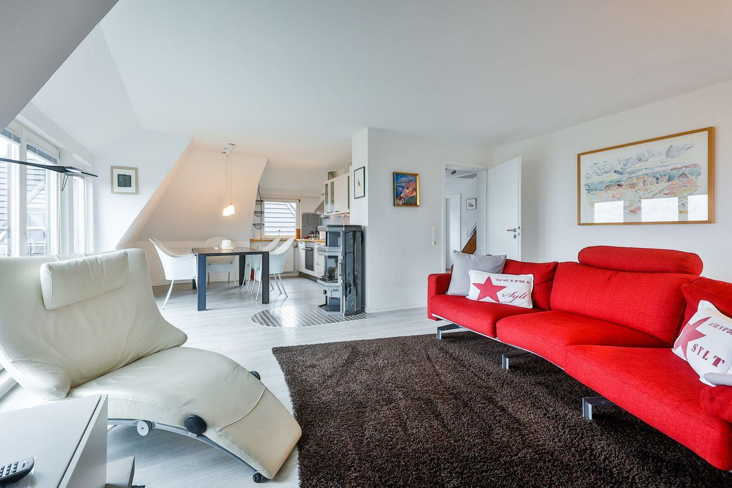 Die 103qm große Wohnung (Sylter Maß), welche sich über zwei Ebenen erstreckt,