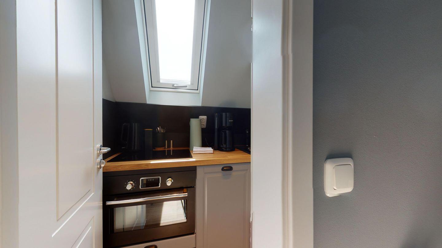 Modernes 1-Raum Appartement mit durchdachtem Konzept und Sauna in strandnaher Lage.