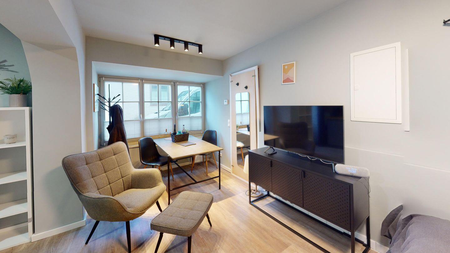 Stilvoll gestaltet lässt das Appartement keine Wünsche offen. Der kombinierte Wohn-Schlafraum wartet mit einem gemütlichen Doppelbett auf. Ebenso verfügt der Wohn- und Schlafbereich über einen Essbereich sowie eine offene Küchenzeile, welche gut ausgestattet ist.