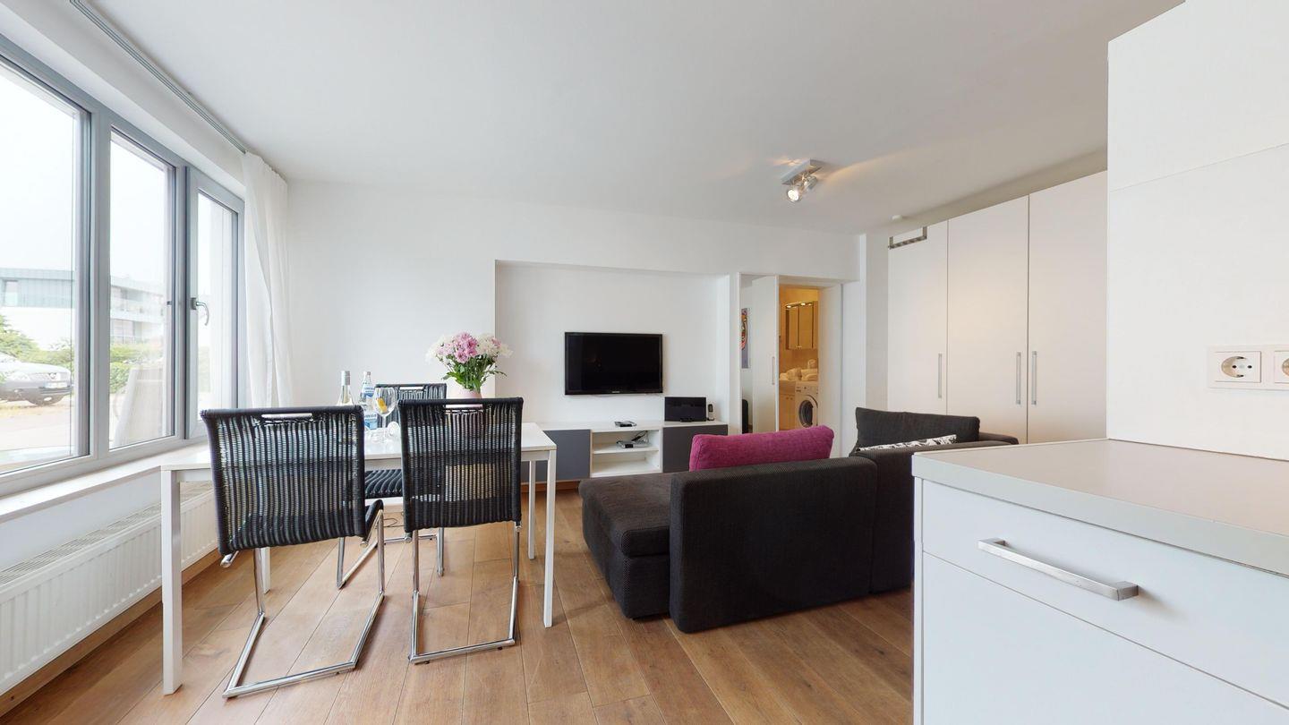 Diese Wohnung liegt im Ergeschoss auf der rechten Seite. Massivholzdielen in gekalkter Eiche, Küchenzeile mit Essplatz, Küche mit Geschirrspüler, Cerankochfeld, Kühlschrank, Mikrowelle, Kaffeemaschine, Espressomaschine mit neuem Geschirr und Töpfen.