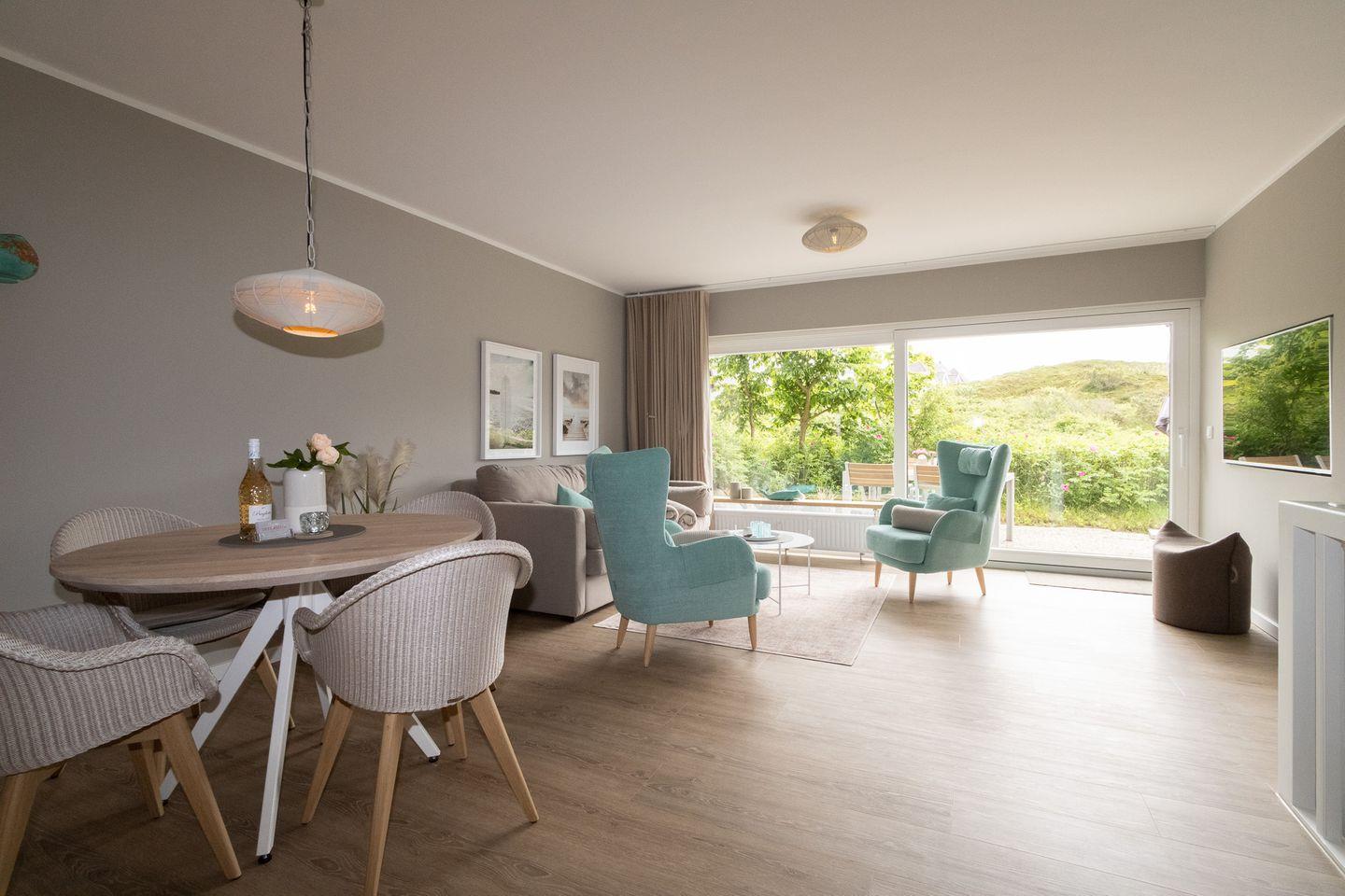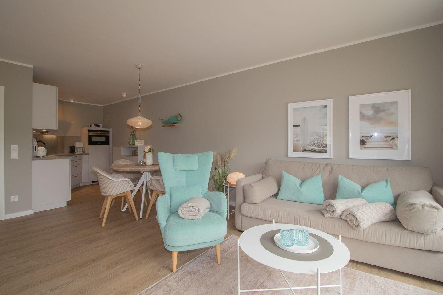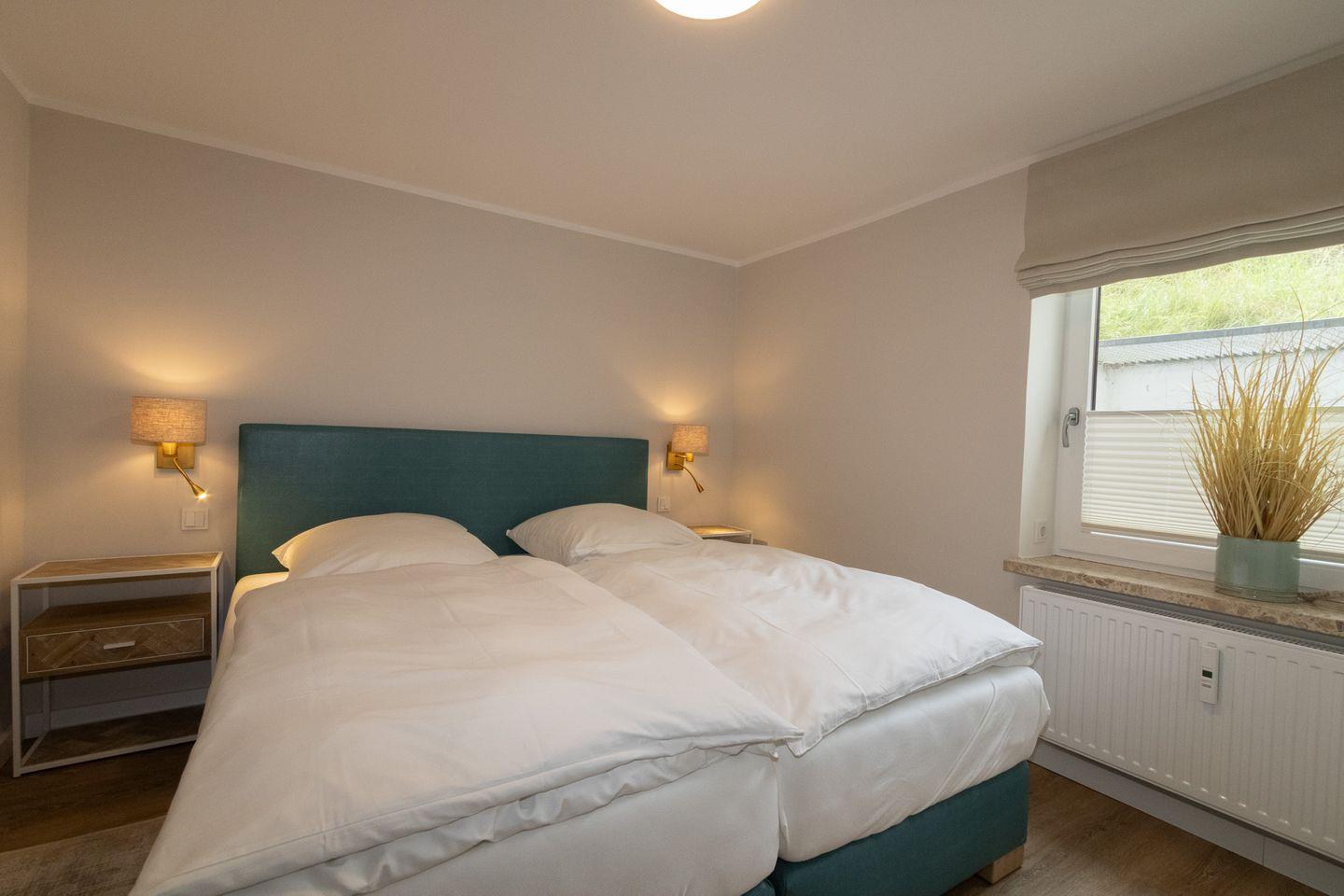 Ferienwohnung für bis zu 4 Personen mit 2 Schlafzimmern. Ein besonderes Highlight ist die große Terrasse, die zum Südwesten ausgerichtet ist und die viel Platz für einen sommerlichen Essplatz und einen Strandkorb bietet. Hier kann man die absolute Ruhe mit Blick ins Grüne geniessen und die Seele baumeln lassen.