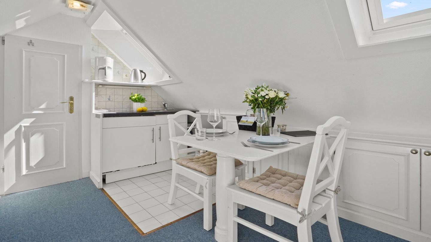 Die kleine aber feine Suite wurde für Sie mit viel Liebe zum Detail gestaltet und verfügt über Tischlereinbauten, die ästhetisch ansprechend sind und auch praktischen Stauraum bieten. Ein abschließbarer Schrank befindet sich im kleinen Vorflur. Die hellen Farben und das moderne Design schaffen eine entspannte und einladende Atmosphäre, die Ihnen das Gefühl von Ruhe und Gelassenheit vermittelt. Damit Ihr Sylt-Urlaub mit Meerblick zu einem echten Highlight wird.