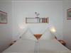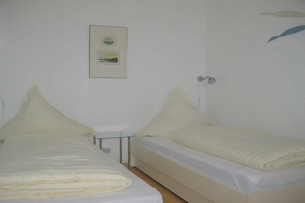 Ferielejligheden ligger på første sal i et velholdt boligkompleks direkte ved øststranden. Den er rummelig indrettet og udstyret med et moderne køkken og et rummeligt badeværelse med håndklædetørrer og et stort bruseområde. Den store stue med parketgulv er lys og indbydende. Lejligheden har to smukke soveværelser: et med to enkeltsenge (90x200) og et med en dobbeltseng (160x200) og havudsigt. Et stort vindue giver dig mulighed for at nyde den fantastiske udsigt over havet til de omkringliggende øer. Denne attraktive lejlighed tilbyder fire personer alt, hvad de kan ønske sig til en dejlig, afslappende ferie på Sild. Fra den møblerede balkon kan du nyde den storslåede panoramaudsigt over havet og slappe af og se livet på den nydesignede Hörnum strandpromenade og de passerende udflugtsbåde.