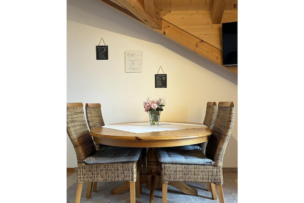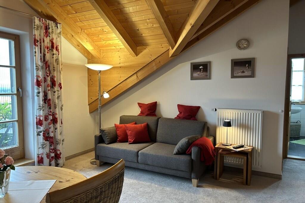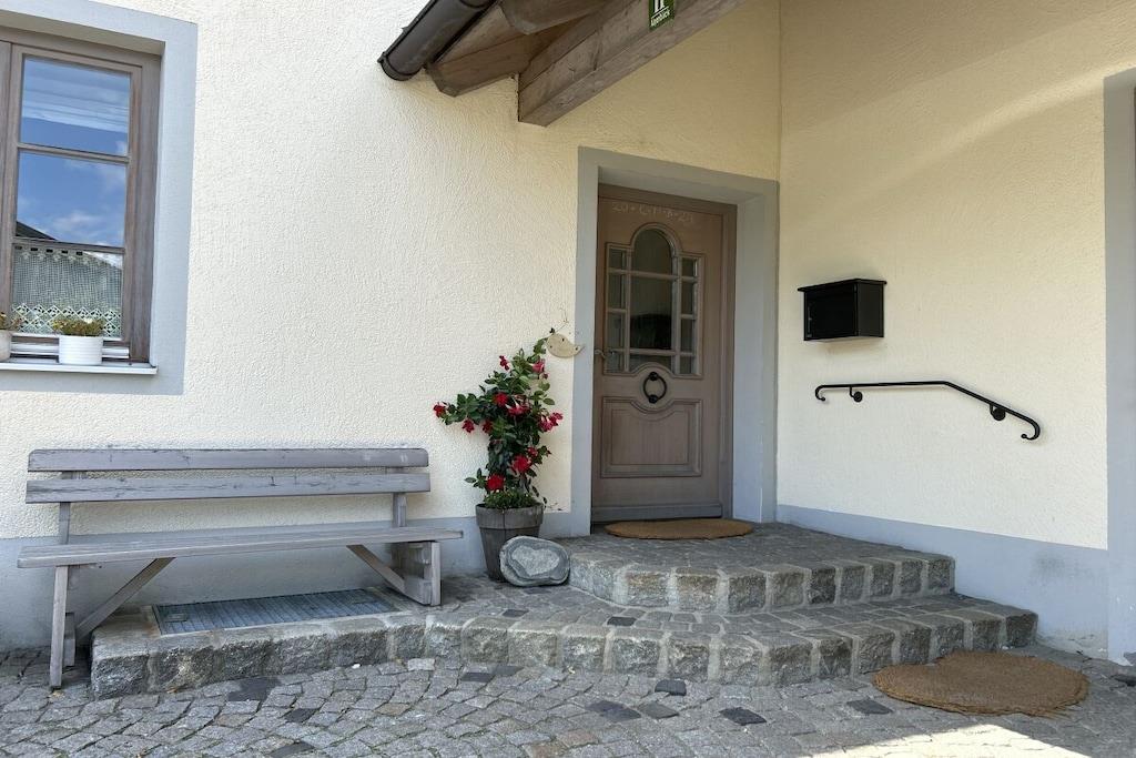 Den 48 kvadratmeter store ferielejlighed er komfortabelt møbleret og tilbyder plads til op til fire personer. Den har to separate soveværelser, et badeværelse og en opholdsstue med et veludstyret køkken. Fra din sydvendte balkon har du en generøs panoramaudsigt over Alpernes forbjerge og Alpekæden, der strækker sig fra Salzburg-regionen gennem Chiemgau-bjergene til det bayerske Oberland. Legetøj og en stor legeplads er også til rådighed for de yngre gæster. En smuk have med hyggelige steder og liggestole samt en grill og forskellige steder til socialt samvær venter dig. Som en særlig bonus tilbyder jeg kosmetiske og wellnessbehandlinger på stedet. Jeg arbejder med mærkerne "Gertraud Gruber" og "von Lupin".