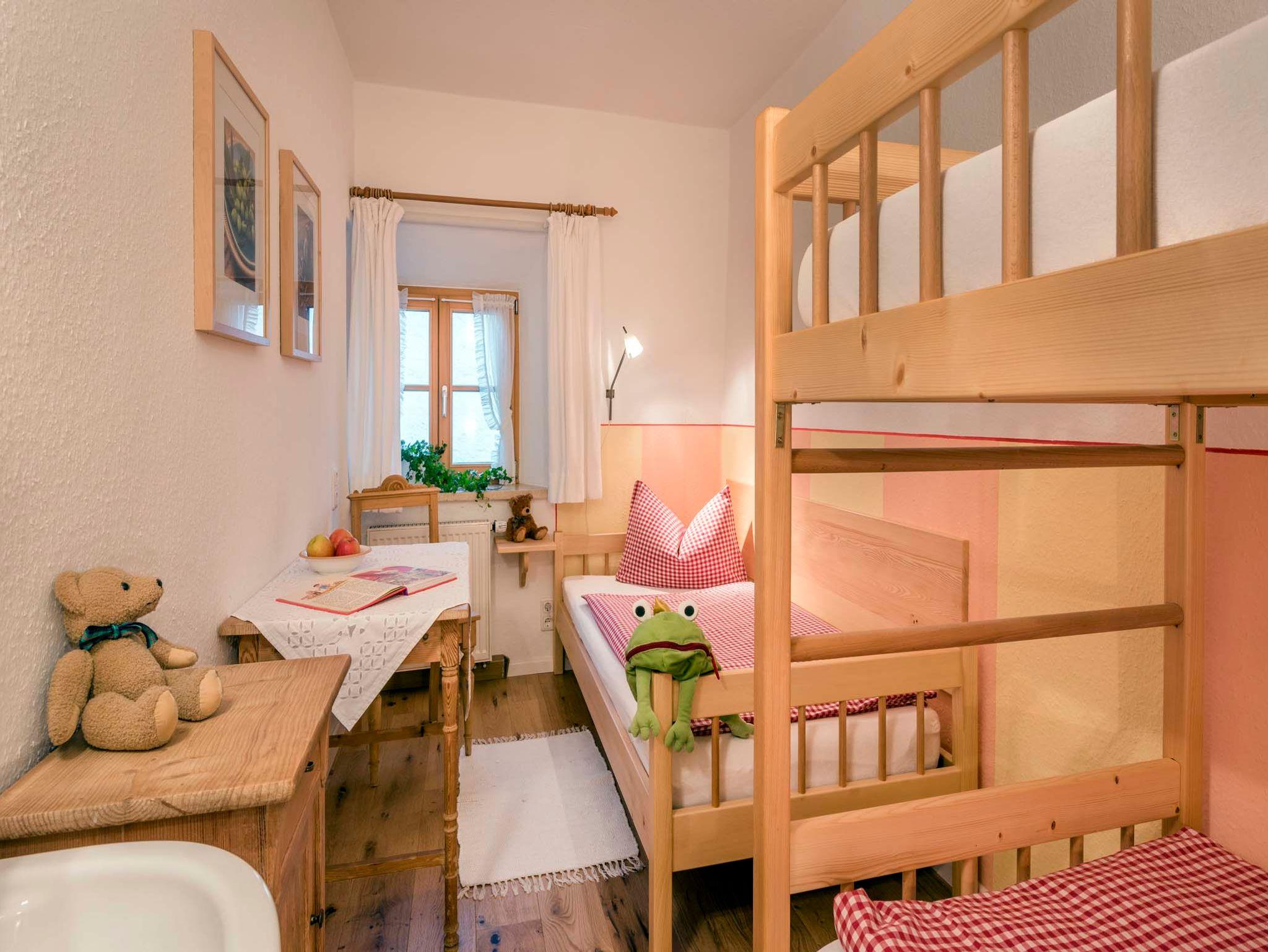 Gemütlich eingerichtete Ferienwohnung mit Bergblick und Ostbalkon zum Bauerngarten, 2 Schlafzimmer, 1 Bad mit Dusche/WC, zusätzliche Dusche und extra WC, komplett eingerichtete Wohnküche mit Spülmaschine, Microwellenherd, Kühlschrank, Backofen etc., Sitzcouch, gute Leselampe und kleines Büchersortiment, Sat-TV.