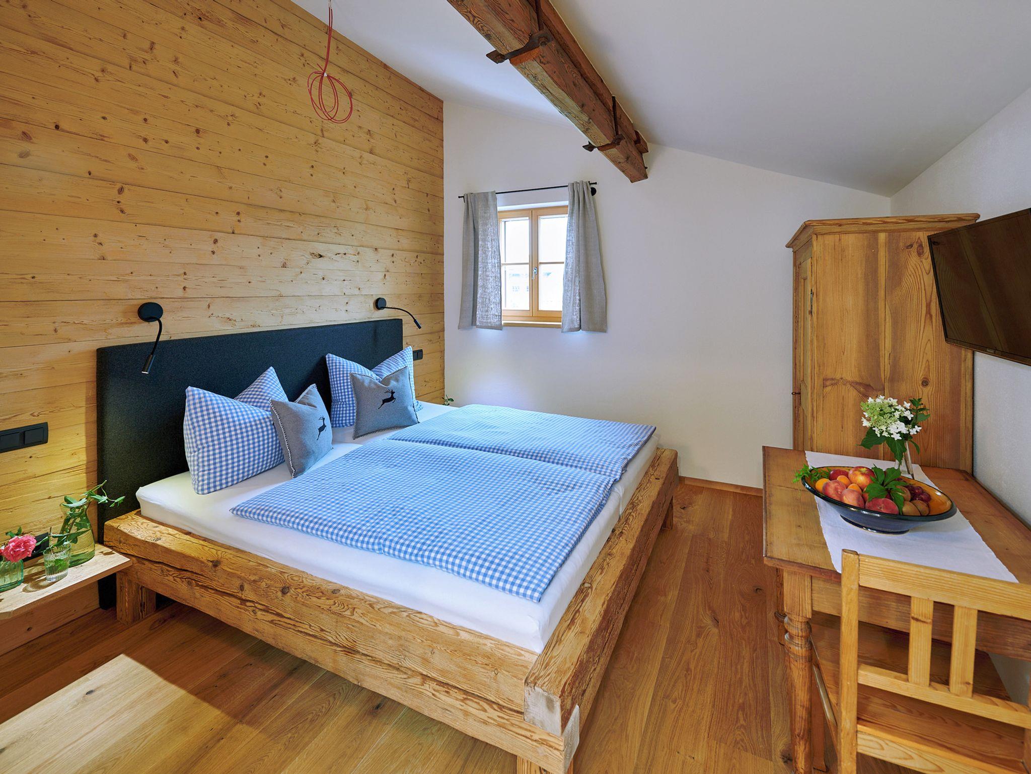 Die 63 m² große luxuriöse Ferienwohnung Vogelnest liegt im 1. Stock. Sie bietet auf 2 Ebenen ausreichend Platz für die ganze Familie. In den zwei separaten, bis ins kleinste Detail harmonisch und liebevoll eingerichteten Schlafzimmern findest du einen persönlichen Rückzugsort und Zeit zum Erholen und Entspannen.Die offene Bauweise, die hochwertige Echtholzausstattung und das rustikale Ambiente vermitteln dir sofort ein heimelliges Wohngefühl.Von der großzügigen Dachterrasse aus genießt du die Abendsonne und kannst den Tag gemütlich ausklingen lassen.