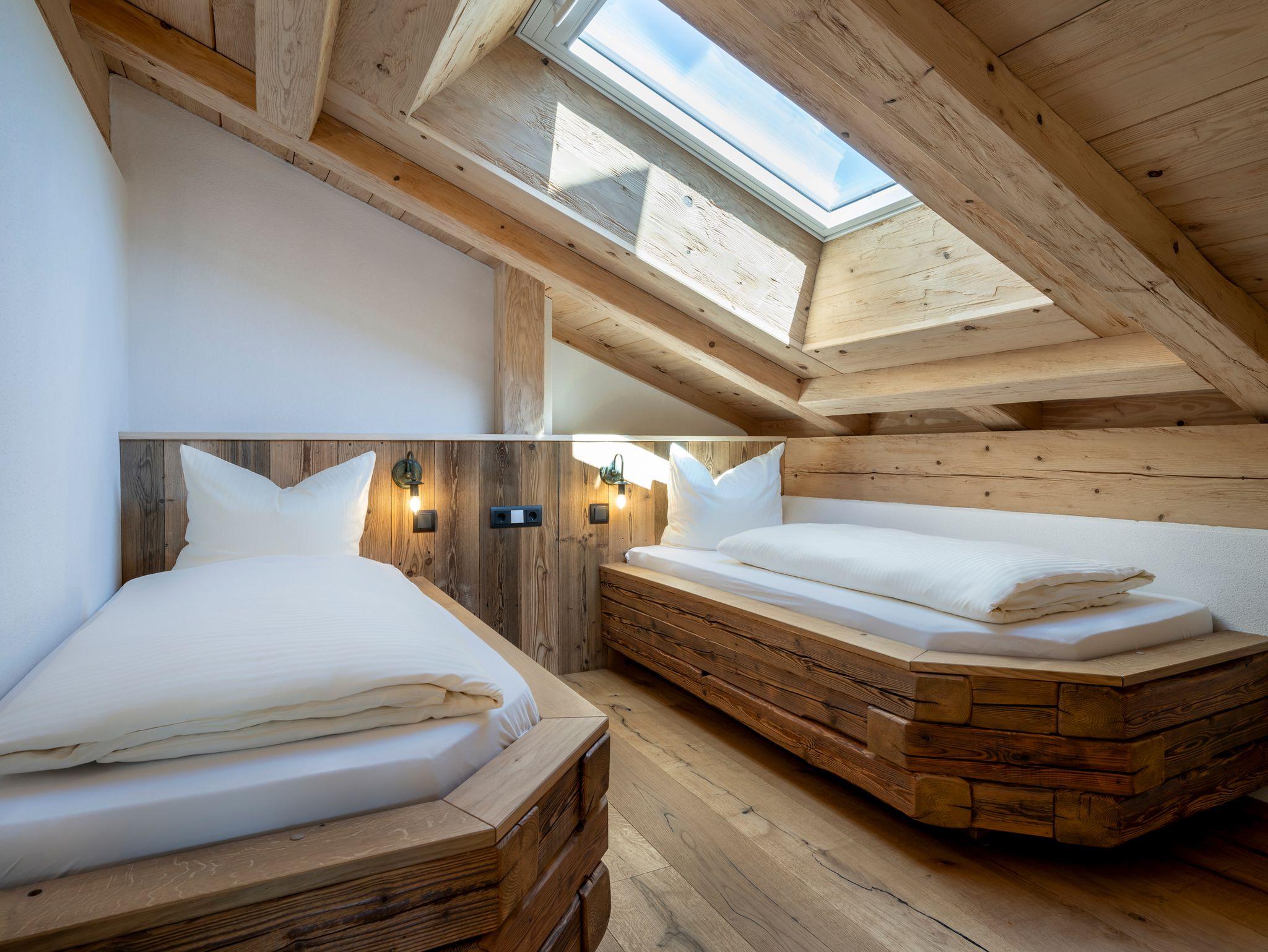 Sie haben die Möglichkeit, in einer unserer neuen 5-Sterne-Luxus-Wohnungen zu wohnen. Hier trifft modernste Ausstattung auf uriges, rustikales Ambiente. Die exklusive, 2-stöckige Maisonetten-Wohnung Watzmann ist ähnlich eingerichtet wie unser Apartment Kampenwand und belegt 100 m² der ersten Etage.