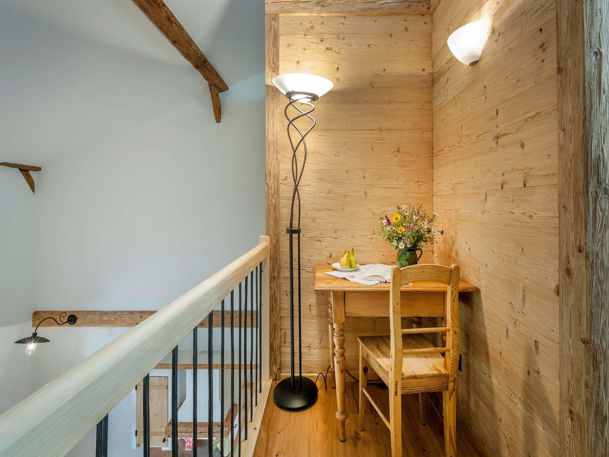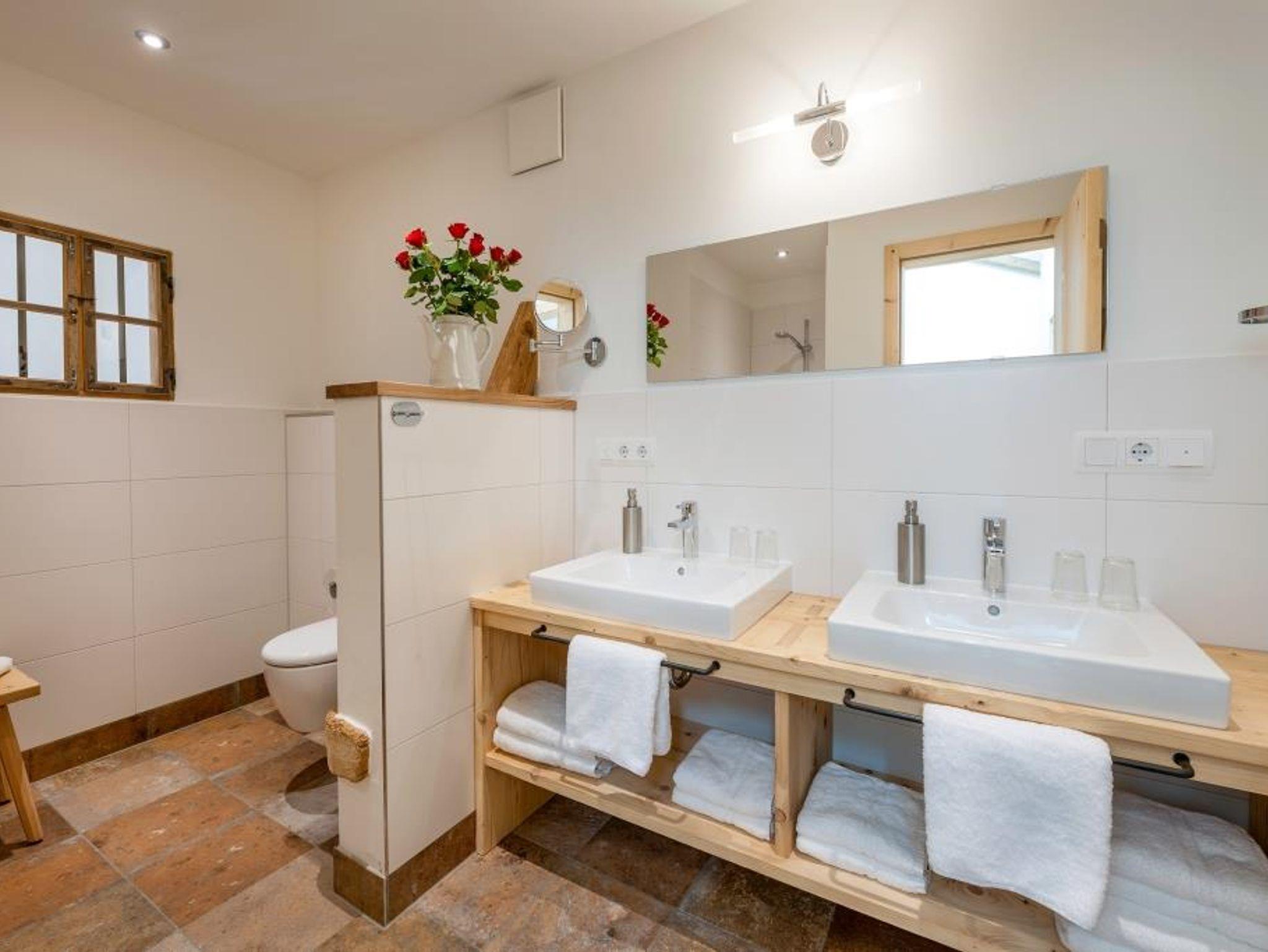 Neue, gemütlich eingerichtete Ferienwohnung mit Bergblick und großzügigem Südbalkon, 2 große Schlafzimmer jeweils mit Dusche/WC, komplett eingerichtete Wohnküche mit Spülmaschine, Mikrowellenherd, Kühlschrank, Backofen, gemütliche Sitzecke mit Kachelofen etc., kleines Büchersortiment, BS-Matratzen, Sat-TV, Stereo-Anlage. Raum mit Wärmekabine zur Mitbenutzung.