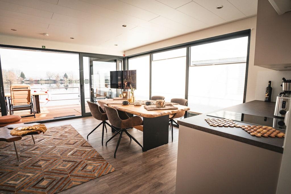 At bo ved vandet med en betagende udsigt garanterer ren afslapning efter blot et par timer, og du vil næppe have lyst til at forlade dit feriehus. Sove- og opholdsstuen er stilfuldt indrettet. De to separate soveværelser med dobbeltsenge, det fuldt udstyrede køkken og det moderne brusebad med separat toilet tilbyder alle de bekvemmeligheder, der sikrer en afslappende ferie. Fra opholds- og spisestuen er der adgang til terrassen, hvor du kan nyde dine måltider. Tagterrassen er perfekt til afslapning og ro. Oplev følelsen af frihed på vandet! Parkering er tilgængelig til din rådighed.