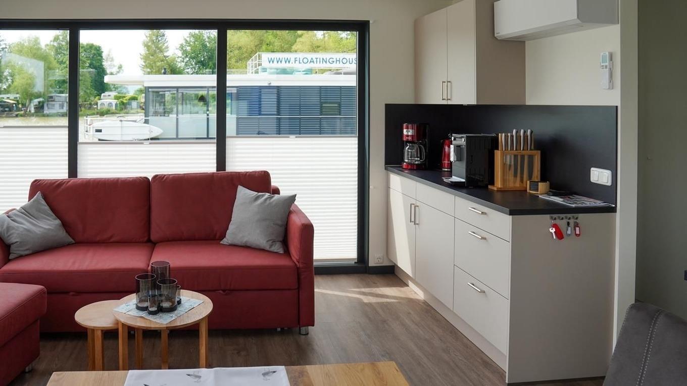 Das Hausboot Möwenschiss ist ein floating 44. Es besitzt 2 Schlafzimmer mit je einem Doppelbett. Das Badezimmer ist mit einer Dusche ausgestattet und einem separaten WC. Der Wohn- und Essbereich ist ein stilvoll eingerichteter Raum mit einer dreiseitigen Glasfront. Der Kamin rundet das einmalige Erlebnis ab.