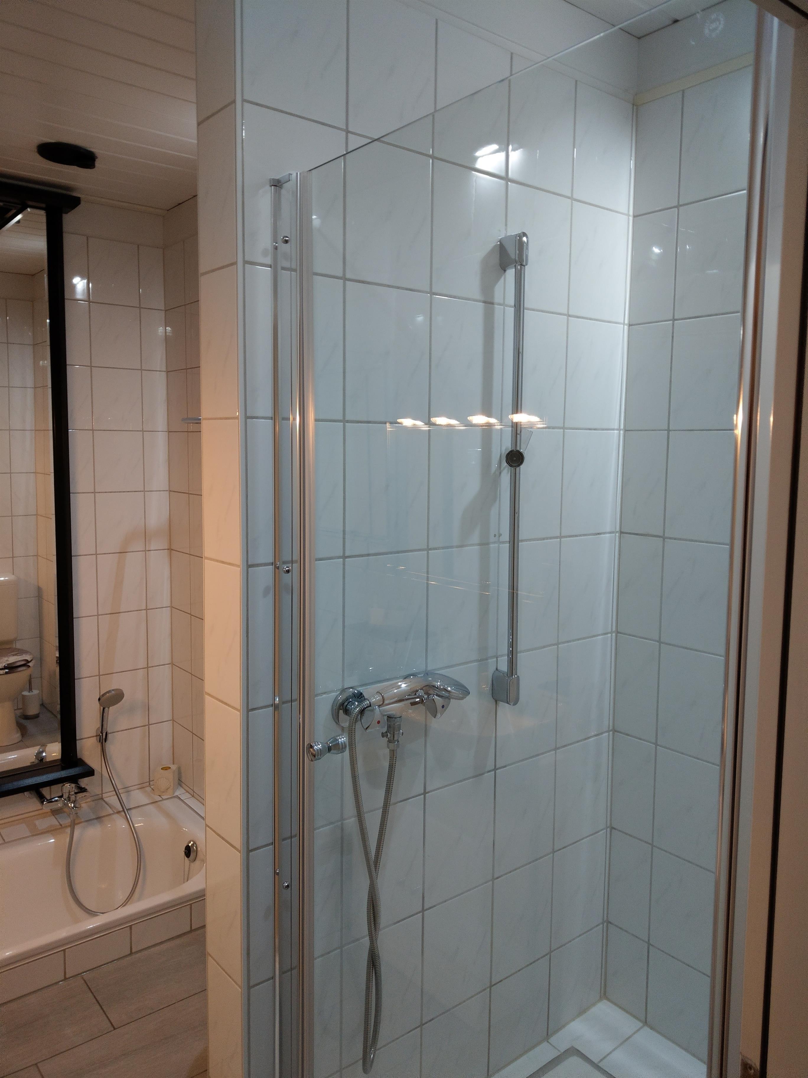 Badeværelse med bruser og badekar
