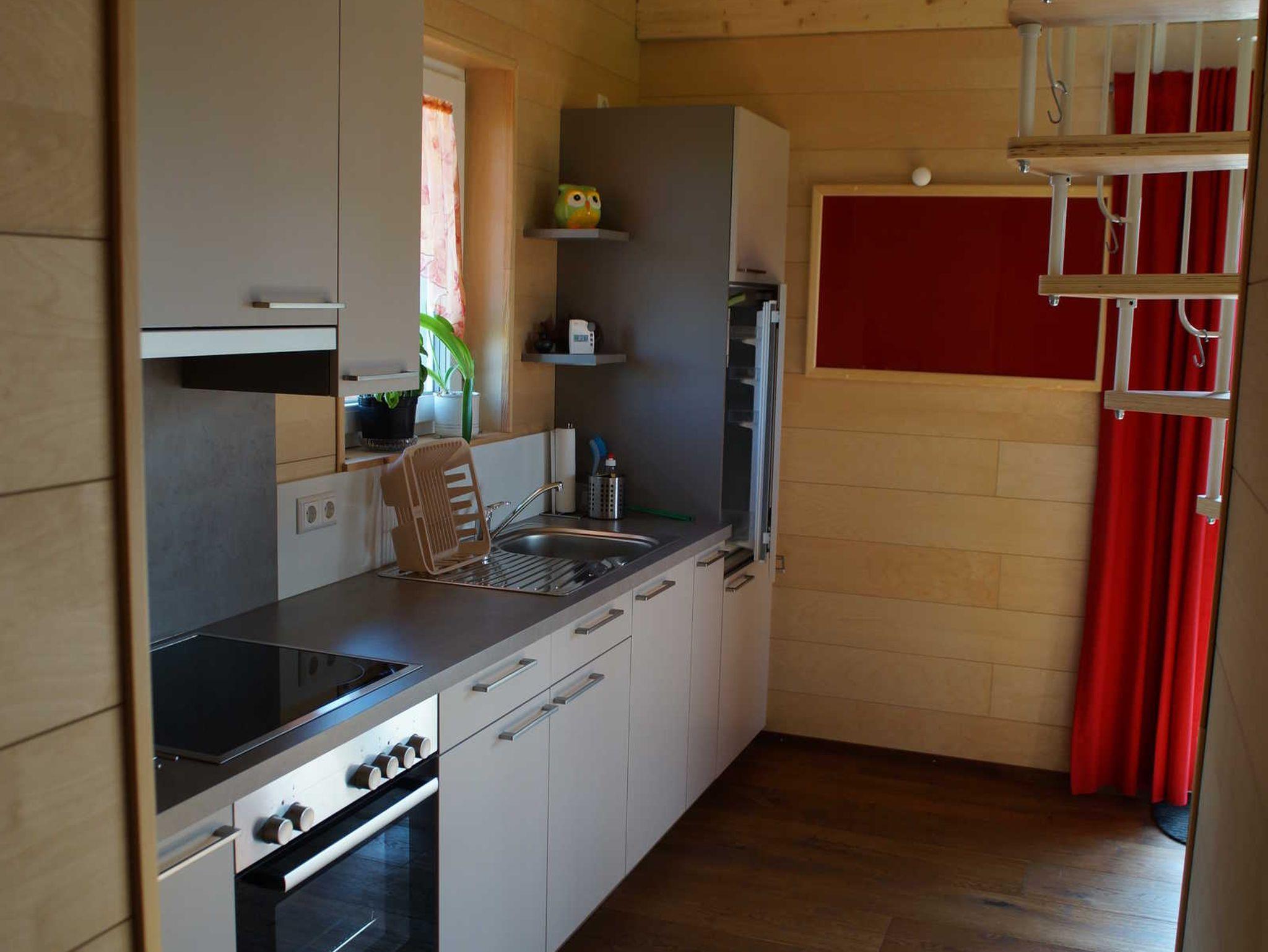 Wir bieten Ihnen in unserem komplett ausgestatteten Haus im EG auf 42 m² einen Wohn- und Küchenbereich, ein Badezimmer mit großer Dusche, separates WC, 2 separate Schlafräume im EG (1 Doppelbett/1 Stockbett). Über eine Wendeltreppe kommt man ins Dachgeschoss mit zusätzlich ca. 25 m² großem Schlafraum mit Doppelbett bzw. Schlafsofa.