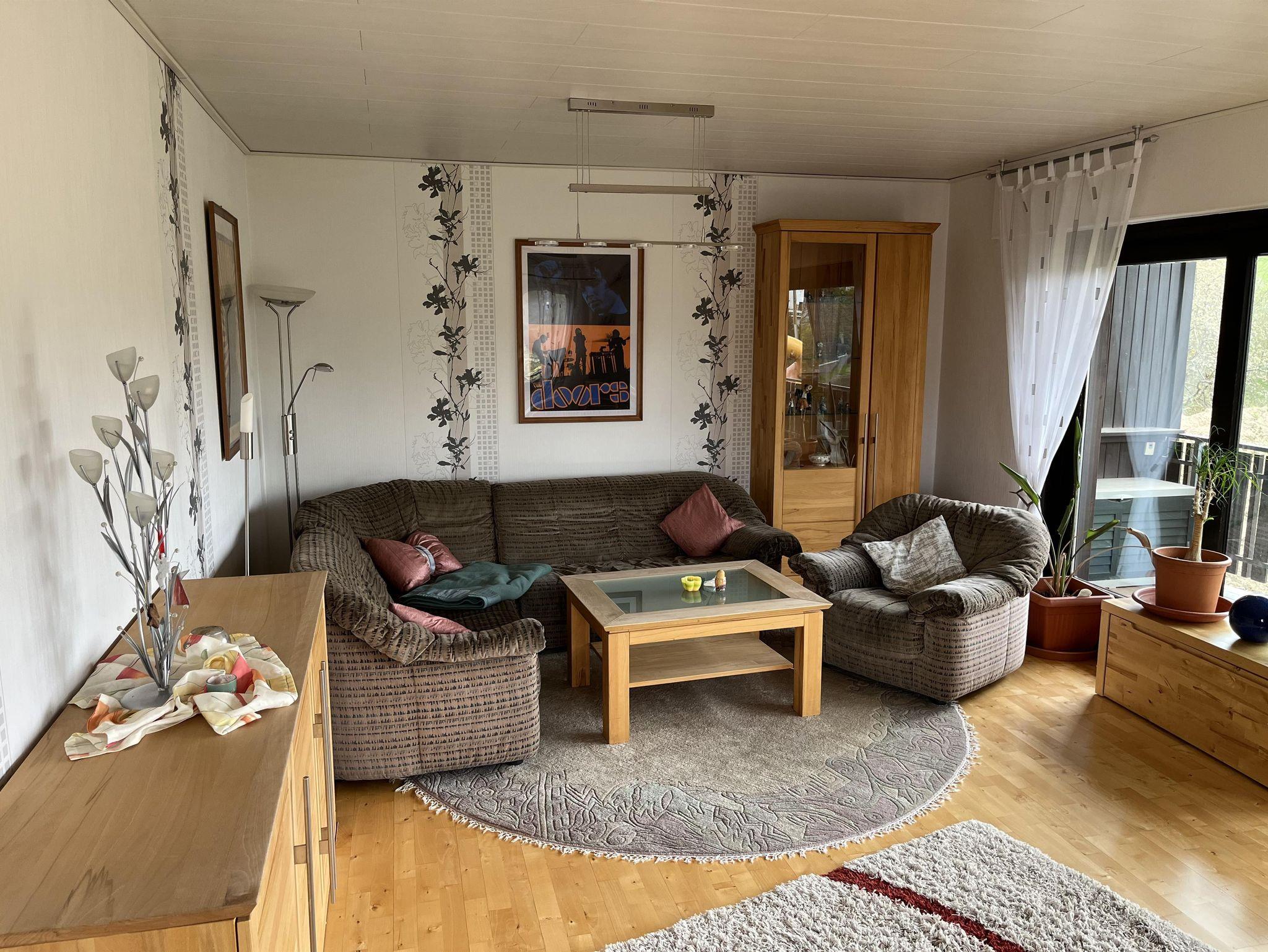 Das Wohnzimmer, ausgestattet mit einer L-Couch, bietet Ihnen die gemütliche Entspannung nach einer ausgedehnten Wanderung oder Fahrradtour. Ein Fernseher und eine Musikanlage stehen Ihnen zur Verfügung. Für ältere Leute mit Problemen beim Aufstehen haben wir noch einen Sessel mit Aufstehhilfe.