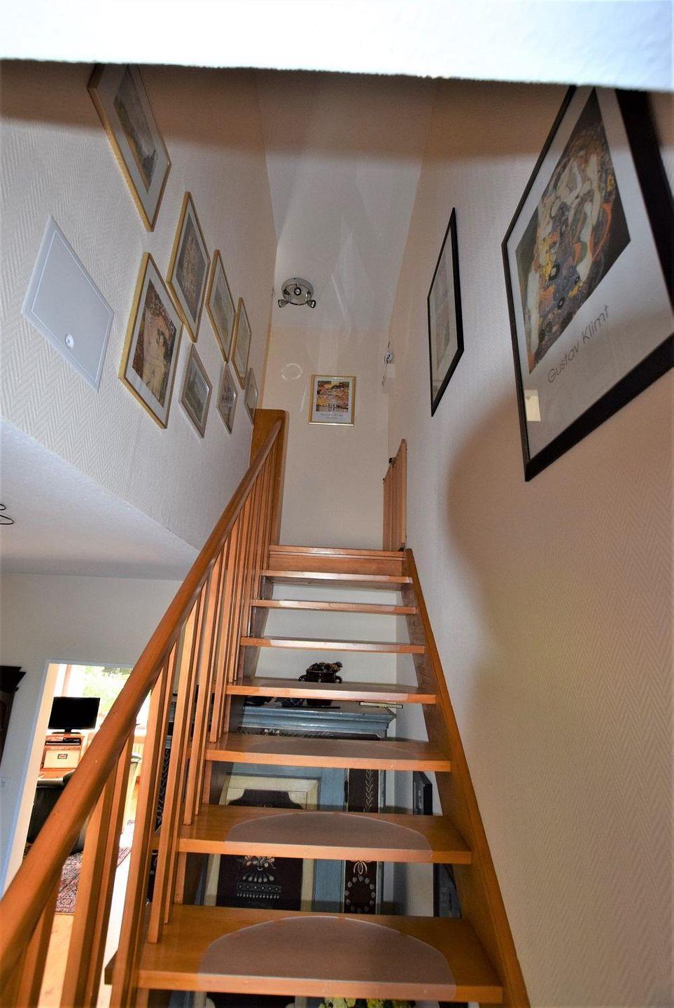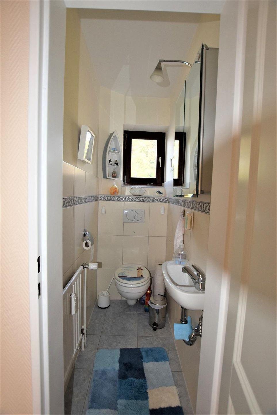 Es verteilt sich auf 2 Ebenen. Die Küche, das Gäste-WC sowie das Wohnzimmer befinden sich im Erdgeschoss.