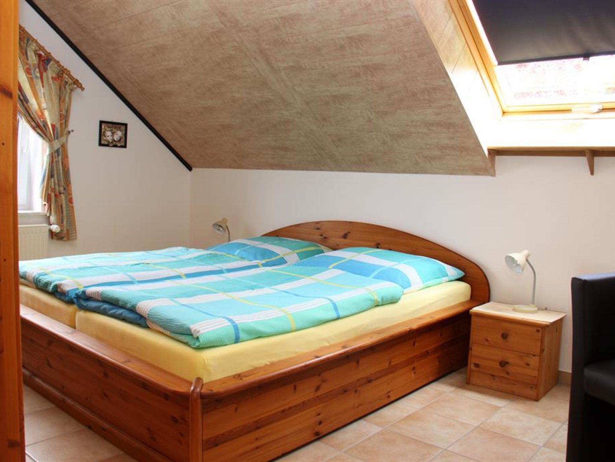 Zwei Doppelschlafzimmer, ein geräumiges Bad mit Duschkabine, Badewanne, WC, Urinal, Waschbecken und Waschmaschine im Bad.