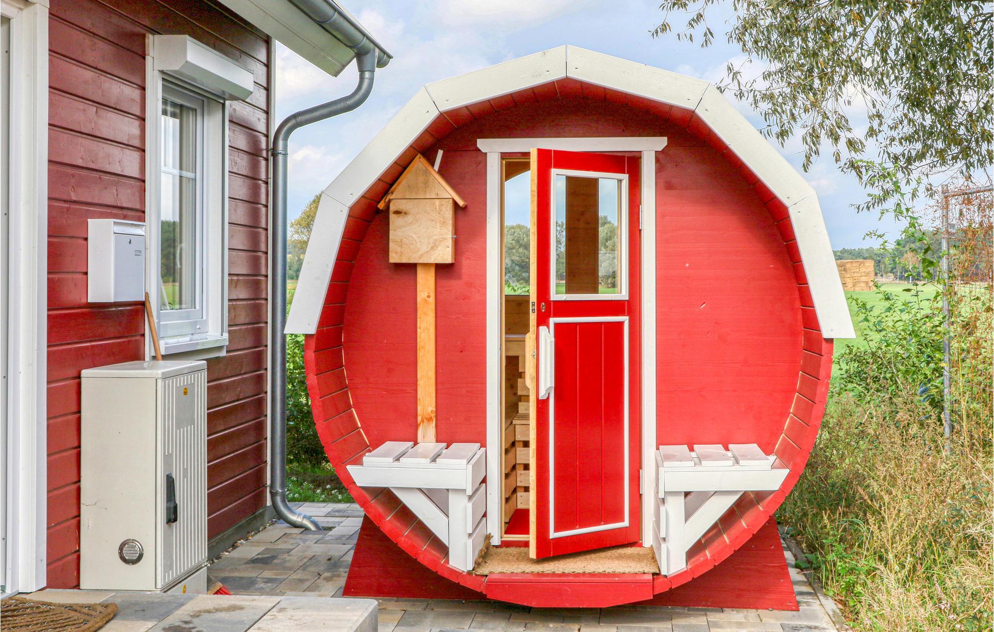 Dette hus er særligt velegnet til ferier med børn. På hemsen er der et legehjørne med gynger og legetæpper. Huset ligger for enden af en stille vej, så der er dejligt roligt i haven, hvor de små kan slå sig løs, mens I slapper af på terrassen i loungemøblerne. På kølige dage tilbyder den udendørs sauna smukke wellness-øjeblikke.
