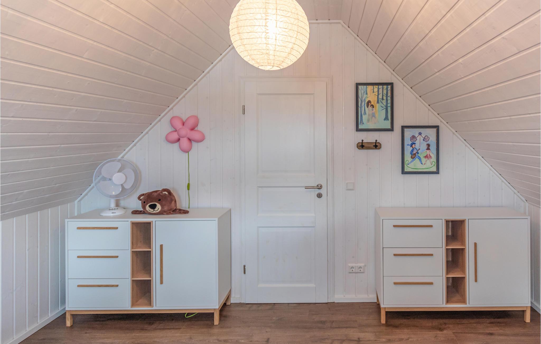 I naturskønne omgivelser tæt på en kanal, der forbinder floderne Oder og Havel, finder i dette lækre, lyse feriehus med udsigt over et idyllisk landskab. Huset er moderne, hyggeligt og lyst indrettet. De store vinduespartier skaber en dejlig nærhed til naturen og muliggør flotte udsigter fra opholdsrummene på begge etager. Sofaarrangementet på øverste etage lægger op til hyggelige læsetimer og afslappede aftener med en god film på fjernsynet.