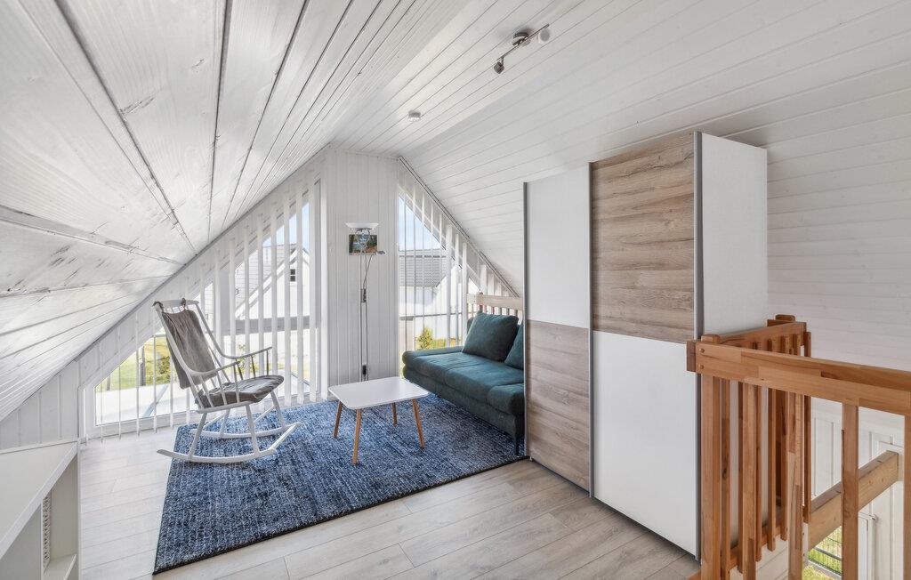 På øverste etage finder I endnu en opholdsstue med åbent galleri, hvor I også kan nyde jeres privatliv og finde ro væk fra familien.