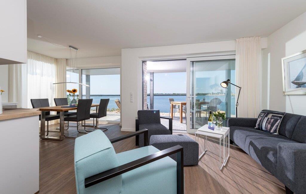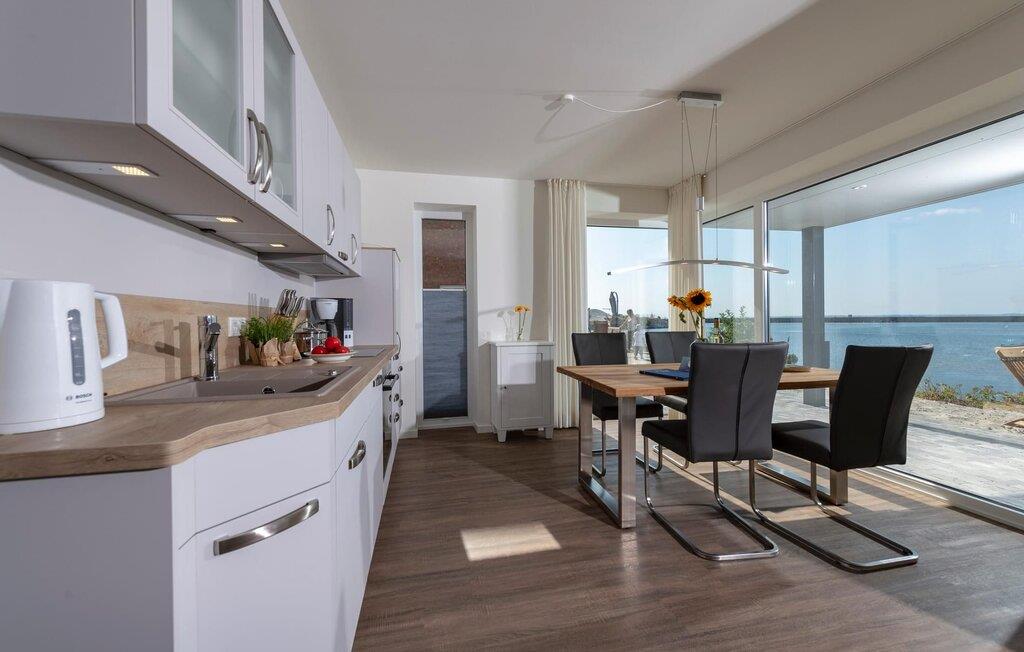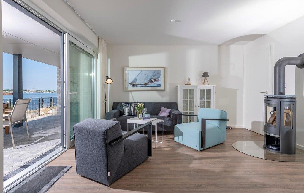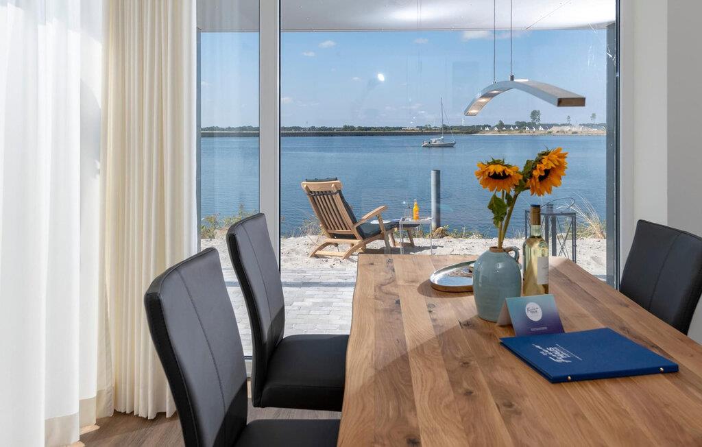Denne stilfuldt indrettede ferielejlighed ligger på et smalt næs midt i Østersøen, mellem Østersøen på den ene side og sejl- og sportsbådshavnen i Østersøresortet Olpenitz på den anden side. Gulv-til-loft vinduer giver en fantastisk udsigt over vandet og en havnebiograf er garanteret. Den sydvendte terrasse lige ud til vandet lover sol dagen lang, mens det private wellnessområde med stor finsk sauna og fritstående badekar med havudsigt (Østersøen/Schlei) sørger for ren ferieluksus. Ejendommen er ikke indhegnet mod vandet. Og når Østersøen viser sin ånd, kan I se vandlandskabet fra jeres sofa med den knitrende ild i baggrunden. Gulvvarmen sikrer hyggelig komfort i hver sæson. Opholds- og spisestuen i åbent plan med det komfortable siddeområde inviterer jer til at blive hængende foran den knitrende pejs. Den panoramiske havnefront byder på ferieunderholdning med skibe, der sejler forbi. Køkken-alrummet er veludstyret og kan bruges til at tilberede lækre feriemåltider. Det fuldt udstyrede badeværelse med bruser på gulvniveau byder på maritime wellness-øjeblikke, da I kan slappe dybt af i den finske sauna. Denne ferieejendom, som er designet i ét plan og er rummelig, tilbyder også gæster med begrænset bevægelsesfrihed fuld feriekomfort. Et gæstetoilet giver ekstra komfort. En privat parkeringsplads og et cykelskur er placeret direkte foran huset. Ferielejligheden Hafenheimat er en lejlighed i stueetagen. Vores favoritsted: Efter en lang dag på stranden kan I nyde havnebiografen og en solnedgang fra solterrassen. Bemærk venligst: OstseeResort Olpenitz er meget populært, og der bygges fortsat i parken. Ikke desto mindre kan I se frem til en 5-stjernet standard og et førsteklasses ophold. Byggeaktiviteterne kommer ikke til at forstyrre jer på ferien, og derfor gives der ikke yderligere afslag i prisen.