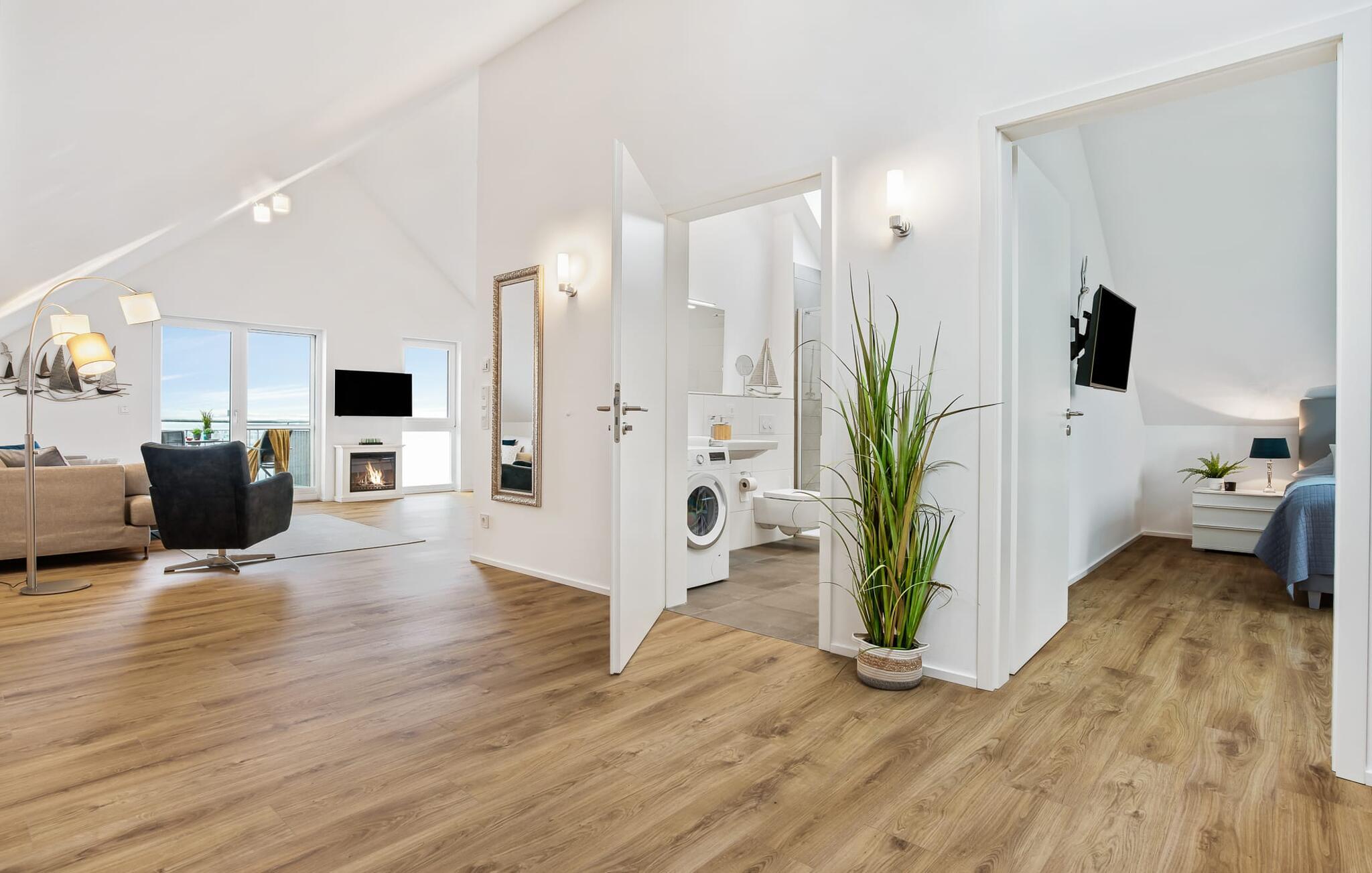 Så snart I åbner lejlighedsdøren, kan I se havnepanoramaet med dets farverige stress og jag gennem vinduet fra gulv til loft foran den åbne stue/alrum over altanen. HAFENJUWEL lever op til sit navn! Direkte ved sejl- og sportsbådshavnen i feriestedet Østersøen, på den livlige havnepromenade med dens varierede butikker, ligger havnejuvelen lige i hjertet af feriestedet Østersøen. Olpenitz-bådudlejningen og kutteren med frisk fisk ligger kun få minutters gang fra havnejuvelen. Edekaen og bageriet rundt om hjørnet runder den perfekte beliggenhed af. Ferielejligheden, indrettet i moderne Sylt-Living design, er lys og venlig og udstråler hygge. At have det godt er ikke svært her! Det integrerede tekøkken i opholds-/spiseområdet er alsidigt og indbyder til at lave mad sammen. I stuen inviterer den komfortable sofa, et stort sæde og en afslapningslænestol jer til at blive hængende, og et fjernsyn giver en afveksling fra havnebiografen. Når vejret er godt, kan I nyde fordelene ved havnejuvelen på den tilstødende altan. På køligere dage giver den elektriske pejs varme og hygge. Soveværelset med sin komfortable dobbeltseng og endnu et fjernsyn tilbyder de bedste betingelser for en afslappet søvn. Soveværelset kan mørklægges, så intet står i vejen for afslappende timer. Ud over alt det nyttige, har det rummelige badeværelse en bruser på gulvniveau til en vellykket start på en ny feriedag. Denne ferielejlighed ligger på 3. sal i en top beliggenhed! Den eksisterende elevator sikrer nem adgang til havnejuvelen, som faktisk er en sand juvel blandt ferielejligheder. Parkeringspladsen ved huset byder på yderligere bekvemmelighed. Vores favoritsted: På balkonen foretrækker vi at tilbringe hele dagen med at se det travle havneliv... Bemærk venligst: OstseeResort Olpenitz er meget populært, og der bygges fortsat i parken. Ikke desto mindre kan I se frem til en 5-stjernet standard og et førsteklasses ophold. Byggeaktiviteterne kommer ikke til at forstyrre jer på ferien, og derfor gives der ikke yderligere afslag i prisen.