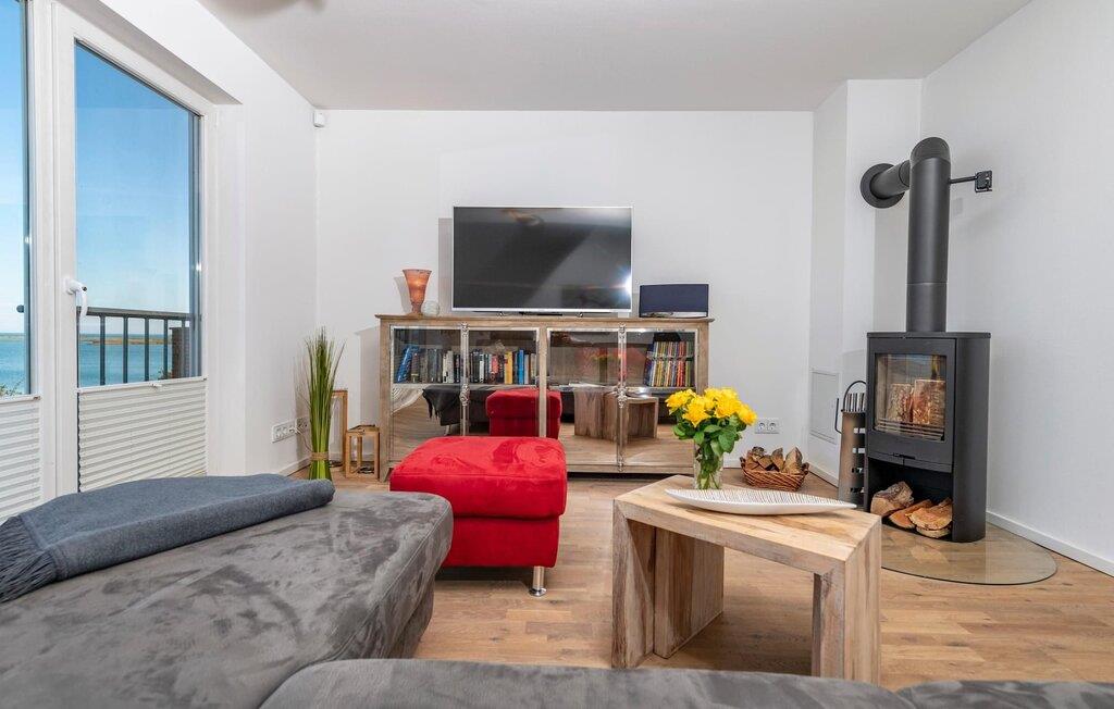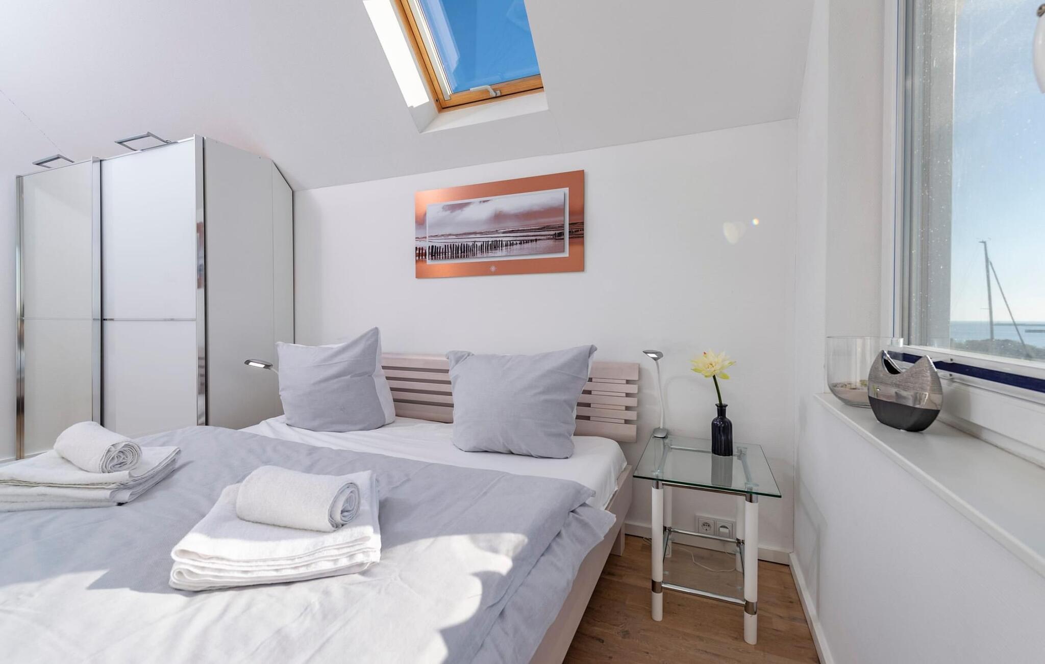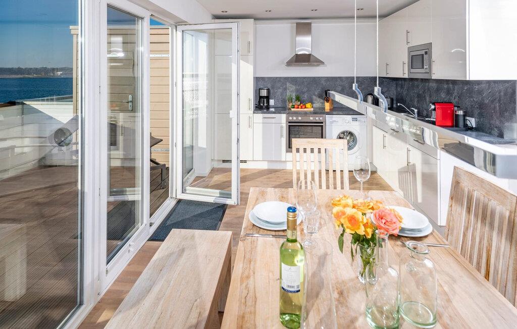 Ferielejligheden Hafenkante ligger direkte på den gamle kaj i Østersøbyen Olpenitz med udsigt over Sleien og feriestedets sejlhavn. Ferielejligheden er af meget høj kvalitet og stilfuldt indrettet i moderne stil. Det byder på sofistikeret indretning på to boligplaner, alt hvad I behøver for en fuldstændig vellykket ferie ved havet. Den åbne stue/alrum på nederste etage med gulv-til-loft vinduer, opholdsområde og spisebord er husets centrum. Her kan I tilbringe hyggelige stunder foran pejsen med en vid udsigt over Slien og dens flodmunding. Fælles måltider, tilberedt i det tilstødende fuldt udstyrede køkken, kan nydes med fuld udsigt over havnen. Denne ubegrænsede feriefølelse fortsætter på den tilstødende terrasse mod syd-syd-vest. To soveværelser på øverste stueplan giver plads til op til fire voksne til at sove og drømme med udsigt til vandet. I det rummelige hovedbadeværelse er der spabad, bruser og infrarød sauna (varmekabine) med lysterapifunktion med udsigt over havnen til jeres personlige wellness-program. Som en ekstra bekvemmelighed er der et brusebad på det nederste opholdsniveau. Ferielejligheden Hafenkante er en etagelejlighed på første og anden sal. Der er en parkeringsplads lige foran huset. Vores favoritsted: Det komfortable opholdsområde i opholdsstuen foran pejsen med en vid udsigt over den idylliske Slien og Schimmelünde fyrtårn. Bemærk venligst: OstseeResort Olpenitz er meget populært, og der bygges fortsat i parken. Ikke desto mindre kan I se frem til en 5-stjernet standard og et førsteklasses ophold. Byggeaktiviteterne kommer ikke til at forstyrre jer på ferien, og derfor gives der ikke yderligere afslag i prisen.