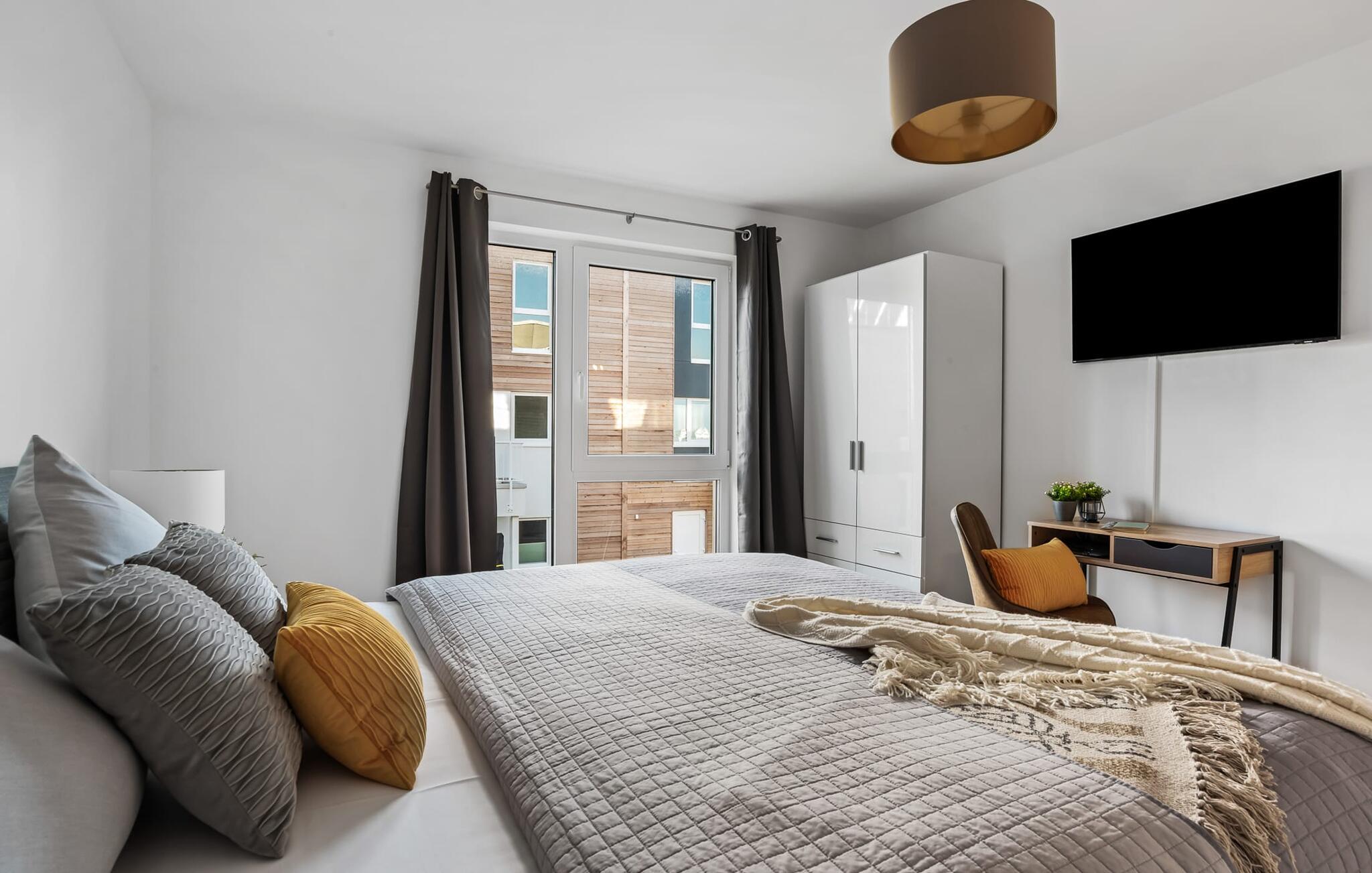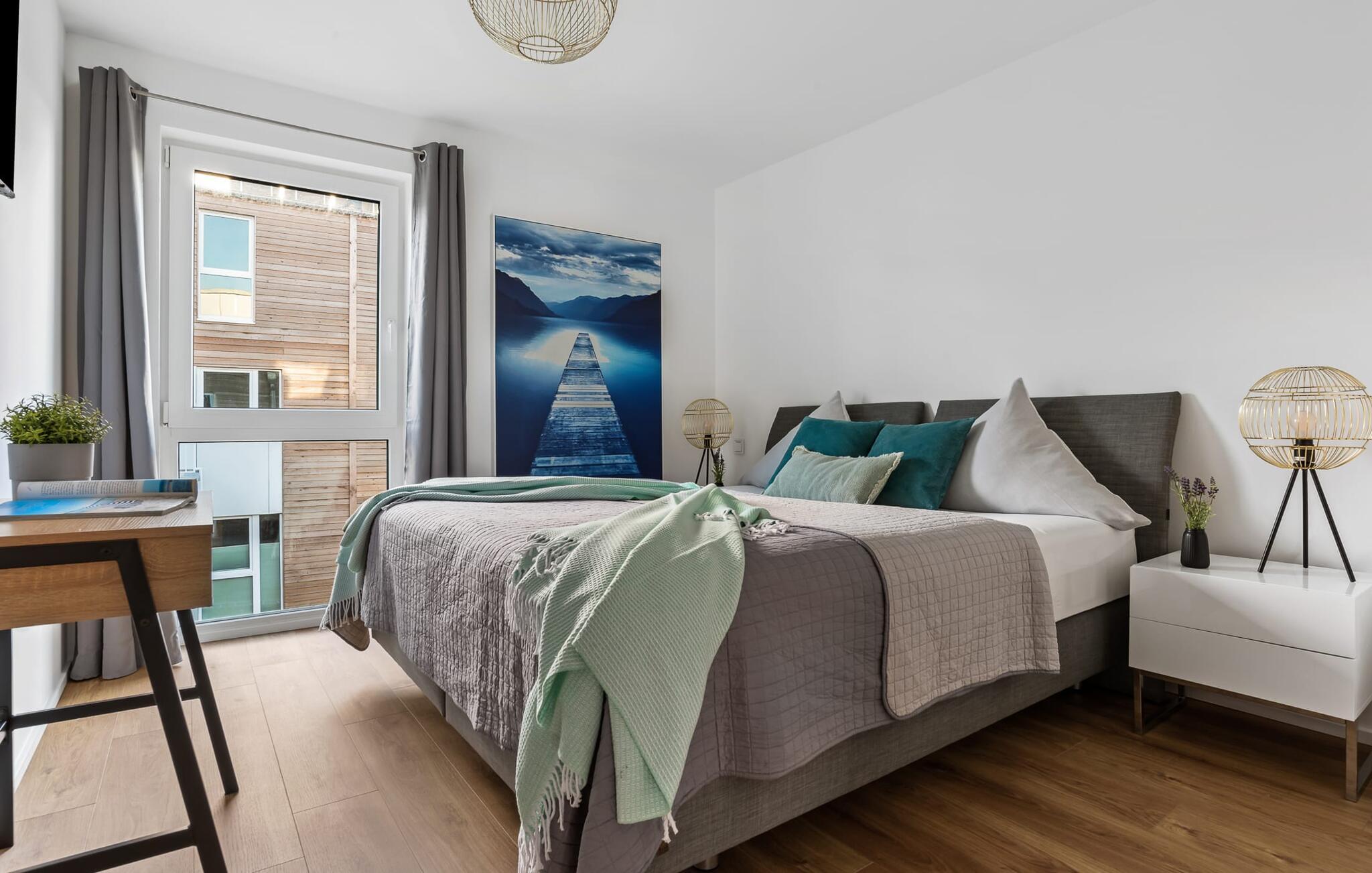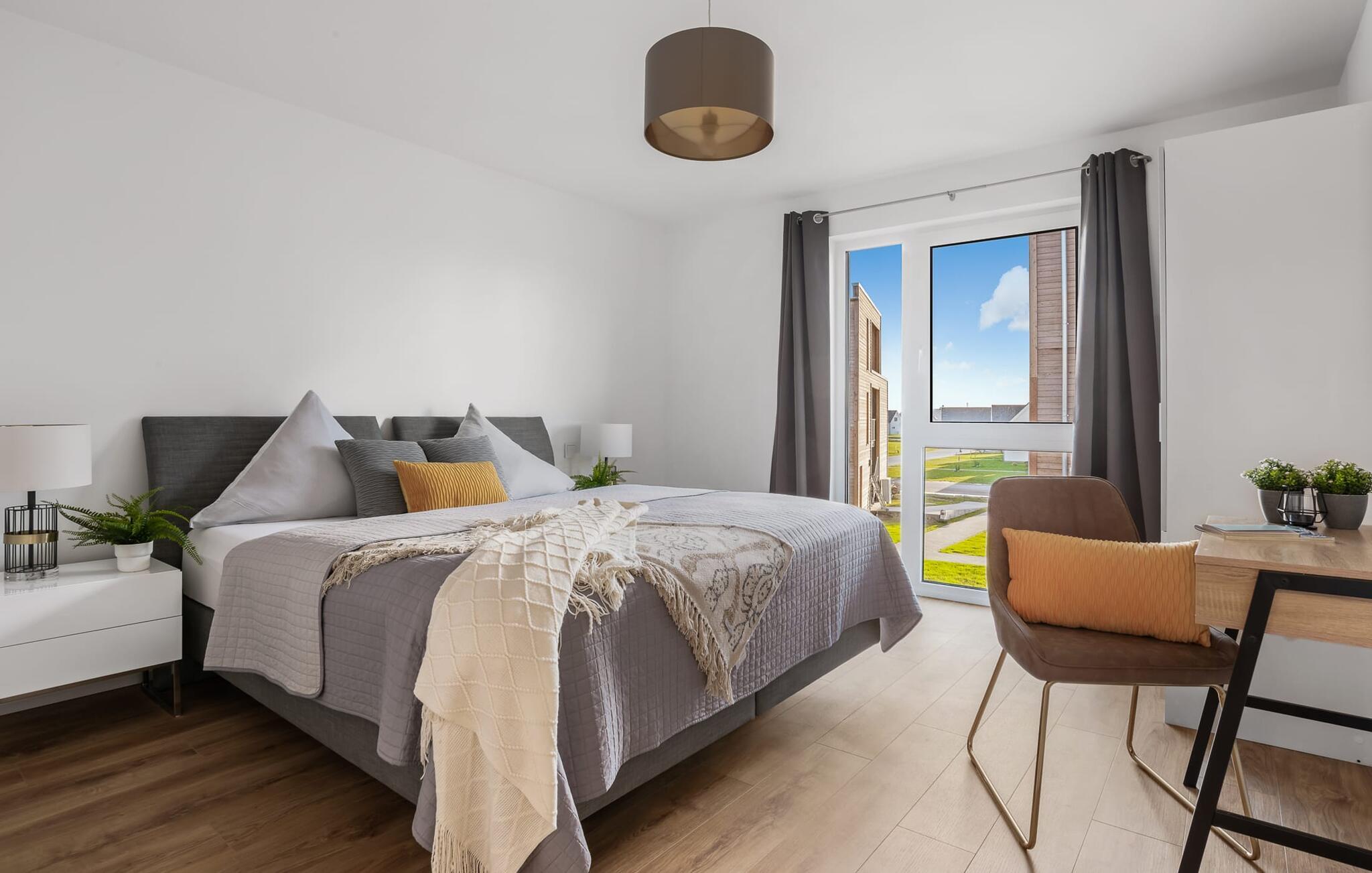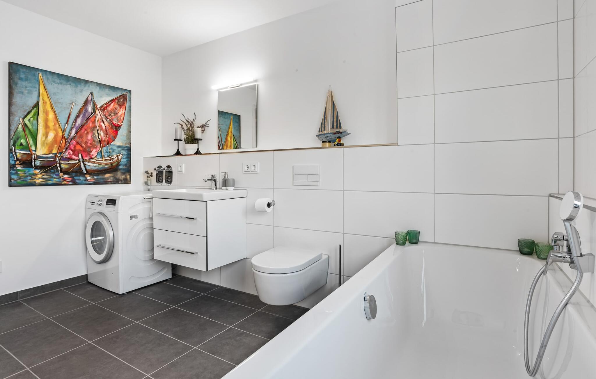 HAFENOASE er en rummelig og rummelig maisonette ferielejlighed på første og anden sal. Havnepromenaden i OstseeResort Olpenitz med dets voksende udbud og indkøbsmuligheder samt sejl- og sportsbådshavnen i OstseeResort Olpenitz kan nås til fods. Den maritime minigolfbane ligger i umiddelbar nærhed og byder på sjov for hele familien. Et særligt kendetegn er, at HAFENOASE er placeret i første række til havnen. Den uhindrede udsigt over havnen er derfor et særligt højdepunkt på HAFENOASE. Når I træder ind i ferielejligheden på første sal, begynder nedbremsningen fra allerførste øjeblik. I er direkte i lejlighedens afslapningsområde. Lejlighedens tre soveværelser er placeret på denne etage. Uanset hvilket soveværelse I vælger, kan I være sikker på en afslappende søvn. To soveværelser er hver udstyret med en dobbeltseng og et fjernsyn til alternativ underholdning. Det tredje soveværelse er indrettet med to enkeltsenge og et fjernsyn. I opholdsområdet kan opholdsområdet omdannes til to mere komfortable sovepladser med blot et par enkle trin. Der er også et veludstyret badeværelse med badekar på denne etage. En gang på anden sal lever HAFENOASE op til sit navn. Her bliver I budt velkommen af gulv-til-loft vinduesfronten med den tilstødende terrasse. At komme ind og straks føle sig hjemme er én ting. At slappe af i den hyggelige opholdsstue, nyde naturens fred og ro ud af vinduet eller se tv er ren afslapning og rekreation! Hverdagen bliver mere og mere fjern... Skulle vejret nogensinde blive nordisk, vil pejsen med sin brølende ild give yderligere hygge. Det integrerede køkken er perfekt udstyret, og det er sjovt at lave mad sammen. Så nyd de færdige lækkerier på terrassen eller start en hyggelig grillaften. I kommer direkte ind på den store sydvestvendte terrasse fra opholdsstuen. Her kan I tilbringe mange afslappende timer med heldagssol. Et andet komplet badeværelse med bruser på gulvniveau og infrarød sauna runder den komplette pakke af til en afslappende ferie. I finder jeres egen parkeringsplads foran ferielejligheden. Vores foretrukne sted: at tilbringe solrige og afslappende timer på terrassen og nyde fordelene ved HAFENOASE... Bemærk venligst: OstseeResort Olpenitz er meget populært, og der bygges fortsat i parken. Ikke desto mindre kan I se frem til en 5-stjernet standard og et førsteklasses ophold. Byggeaktiviteterne kommer ikke til at forstyrre jer på ferien, og derfor gives der ikke yderligere afslag i prisen.