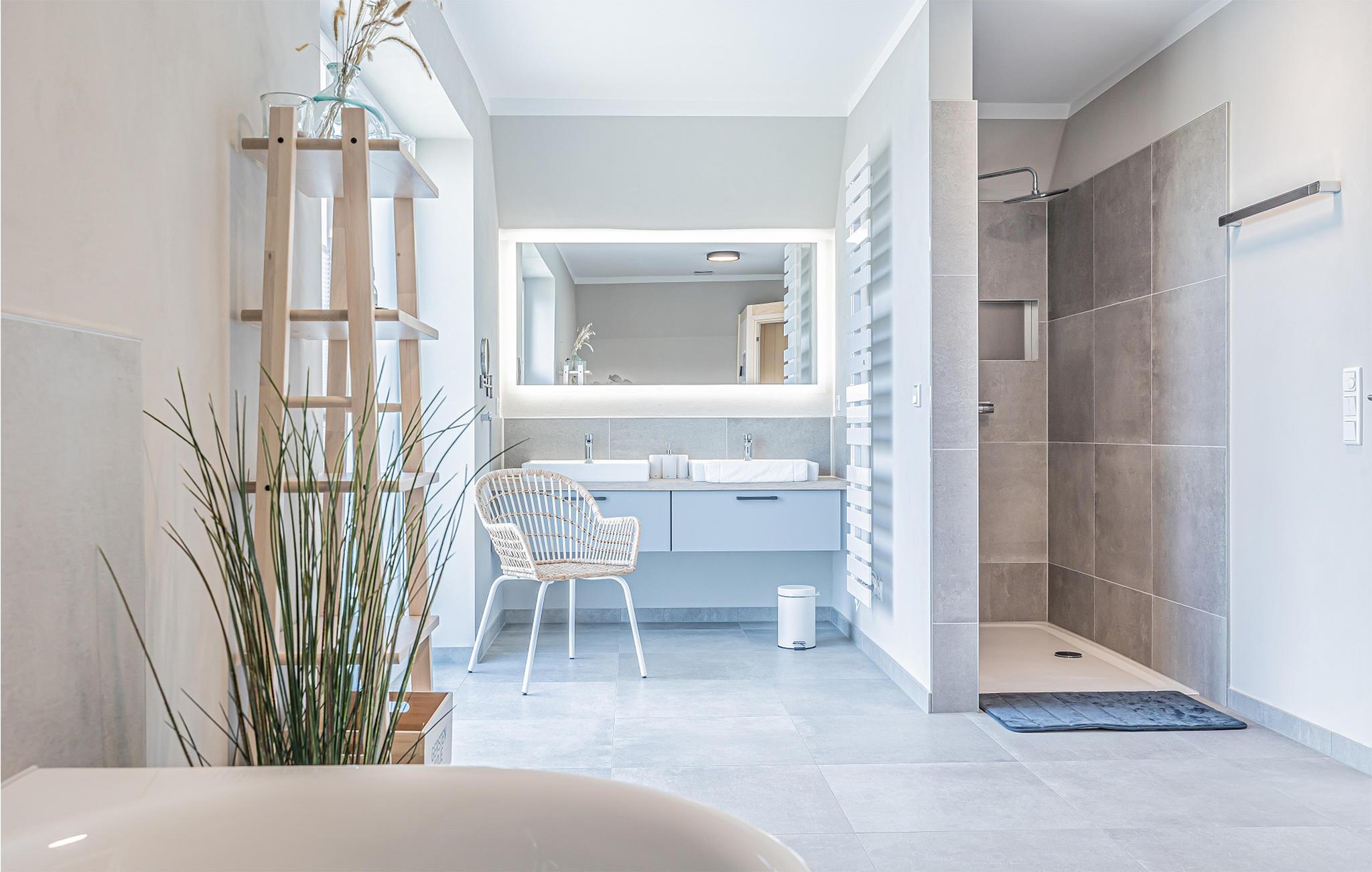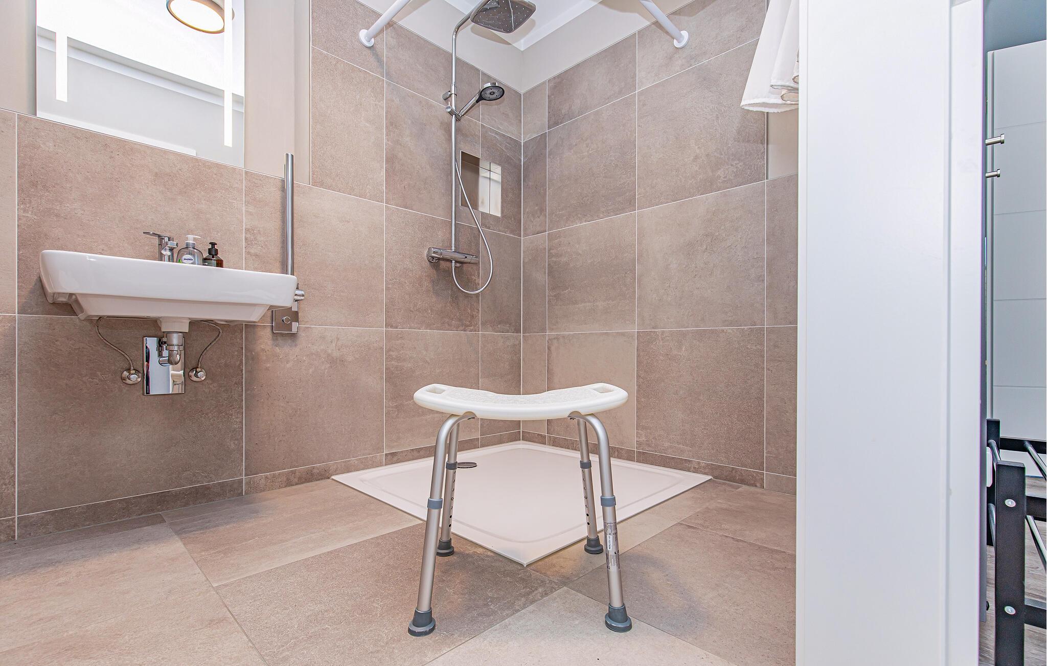 I jeres sommerhus "Hafer-Koje kan I forvente en høj komfort i den landlige stil. Klitgræs og frisiske vægge fuldender den moderne arkitektur. Grundet den solide konstruktion og brugen af letvedligeholdelsesmaterialer lover dette feriehus en høj boligkvalitet med høj energistandard. Værelserne af høj kvalitet byder på masser af plads, komfortable faciliteter såsom gulvvarme og en brændeovn til hyggelige aftener. Faciliteterne byder på alt, hvad I kunne ønske jer. Indgangen til ferieboligen samt alle værelser i ferieboligens stueetage kan nås uden trapper. Badeværelset i stueetagen kan ligeledes bruges uden barrierer.