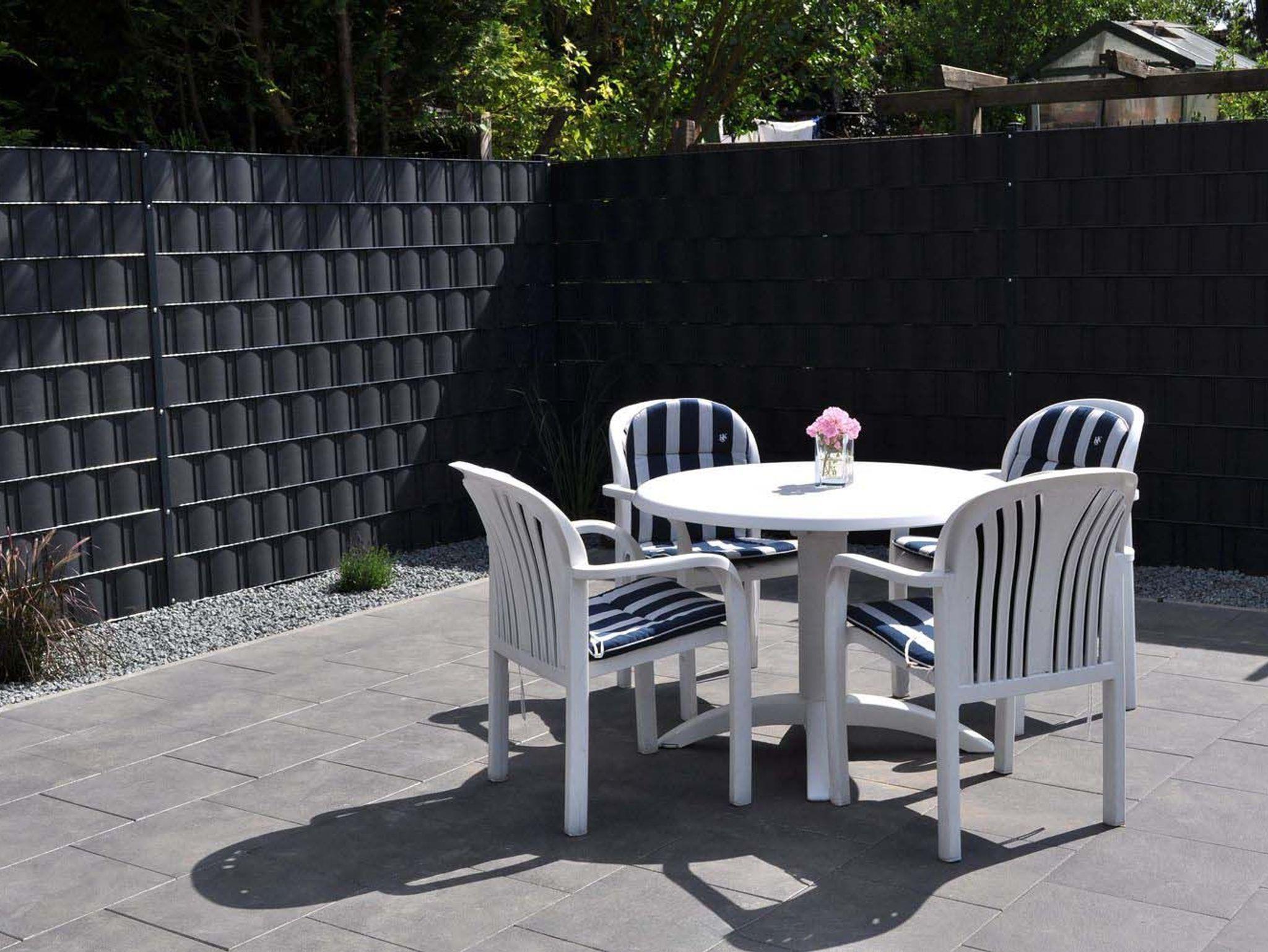 Terrasse: Für die Gemeinschaft auf dem Grundstück mit Tisch und Stühlen