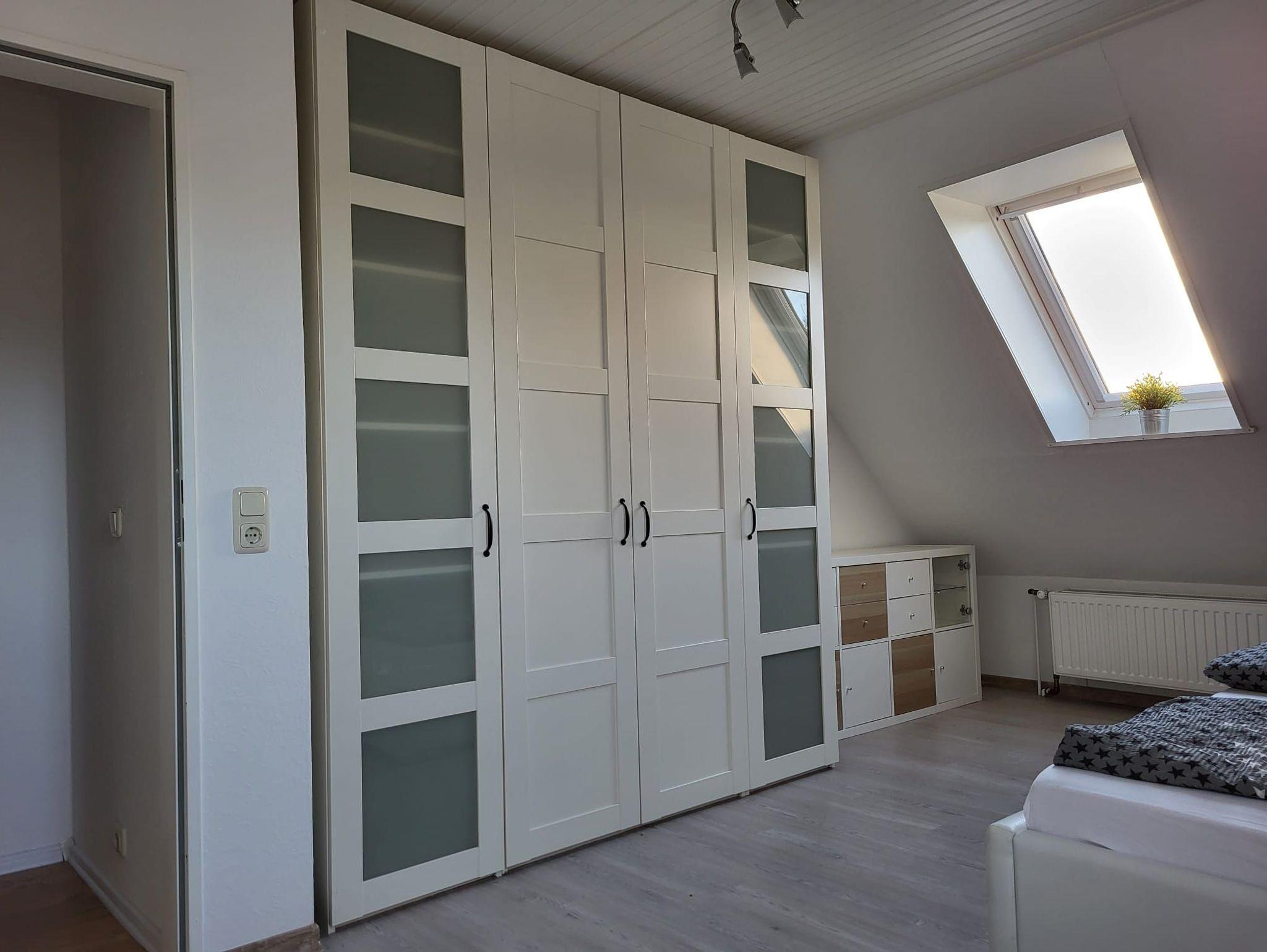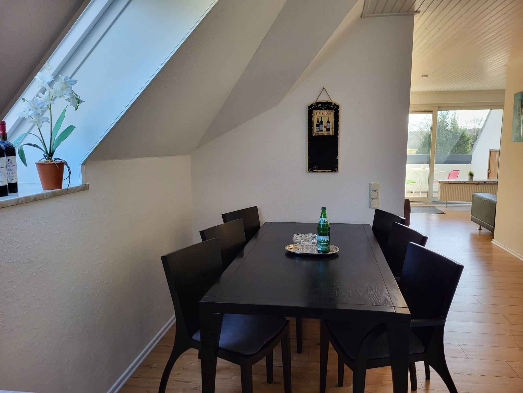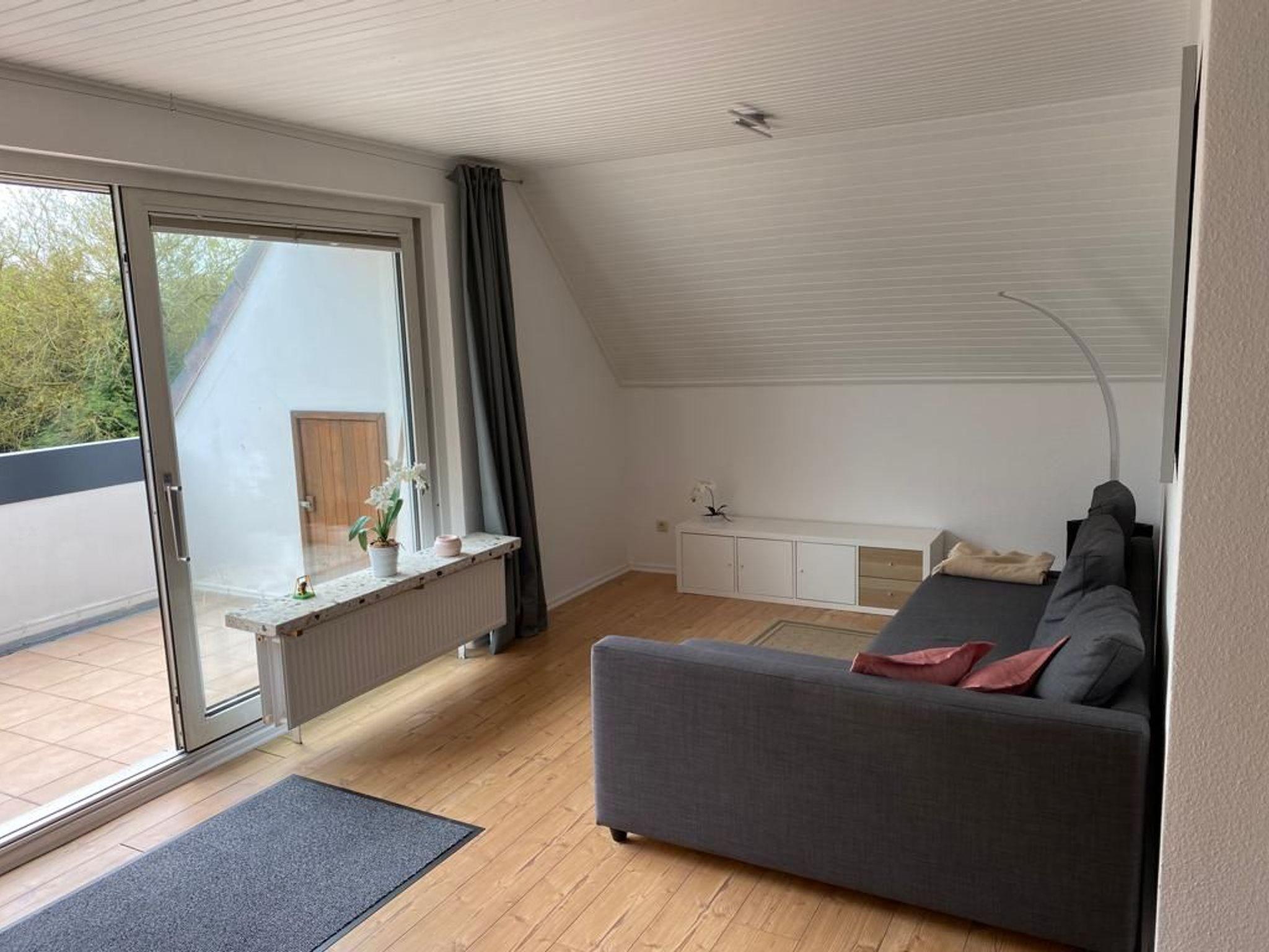 Die Dachwohnung befindet sich im 1. Stock mit einem schönen Ausblick auf den Garten. Das Wohnzimmer verfügt über eine Fernsehecke mit 55 Zoll TV, einem Essbereich und einer Schlafcouch im vorderen Bereich, worüber man auf die Loggia gelangen kann. Die Küche verfügt über eine Spülmaschine, Kaffeemaschine, Kühlschrank mit Gefrierfach, Wasserkocher, u v. m. Im großen Schlafzimmer befindet sich ein Doppelbett (200x180 cm) und im kleineren Schlafzimmer ein französisches Bett (200x140 cm). Das Bad ist mit Dusche, WC und einem Waschtisch ausgestattet.