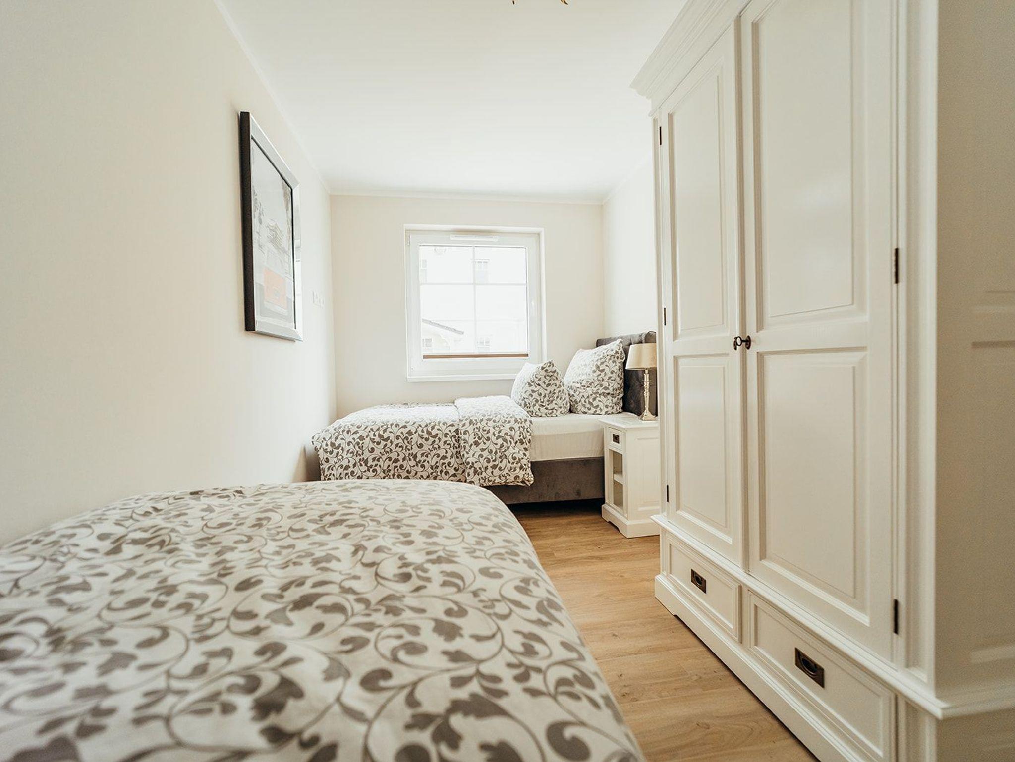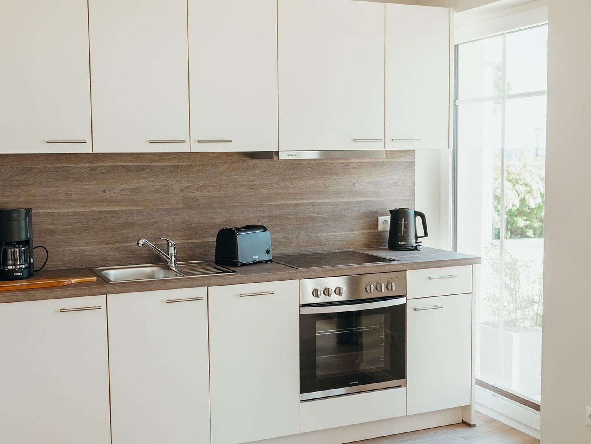 Diese Wohnung bietet einen direkten, unverbauter Blick durch bodentiefe Fenster auf den Strand von Haffkrug. Die Wohnung ist ca. 64m² groß. Zwei separate Schlafzimmer mit Boxspringbetten, ein großzügiger Wohn-Essbereich mit integrierter Küchenzeile, zwei Duschbäder mit WC und eine schöne Terrasse ausgestattet mit Sitzmöbeln umschreiben dieses perfekte Feriendomizil.
