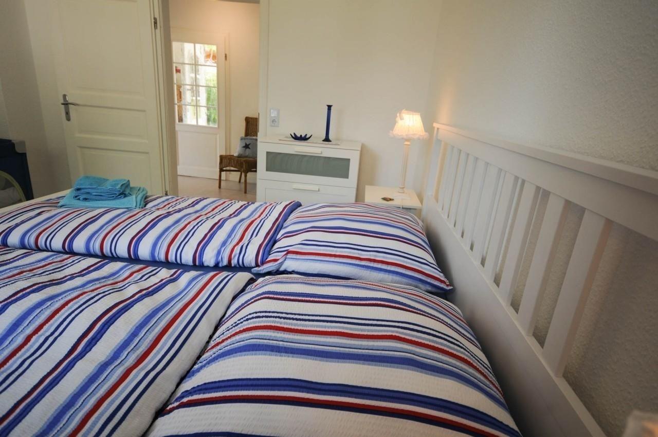 Ihr Feriendomizil hat 2 separate Schlafzimmer davon 1 Schlafzimmer mit zwei Einzelbetten (2x80x200cm) und einem Kleiderschrank, ein weiteres danebenliegendes Schlafzimmer mit Doppelbett (2x90x200cm), Kleiderschrank und Kinderbettchen (60x120cm). Die wohlverdiente Nachtruhe können Sie hier mit elektrischen Außenjalousien unterstützen. Das tageslichthelle Badezimmer mit Badewanne, beheizbarem Handtuchhalter und WC rundet diese schöne Ferienwohnung ab. Bettwäsche und Handtücher sind hier inklusive! Genießen Sie die mobile Freiheit mit kostenlosem W-LAN.